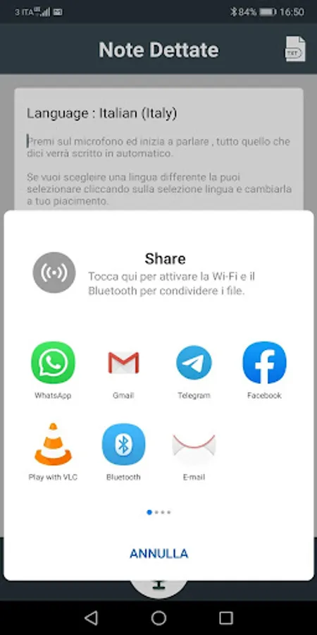 With Note Dettate you can transcribe any dictated text and save it comfortably in a file on your phone / tablet or share it on Whatsapp, Telegram, Email or other application of your interest.
