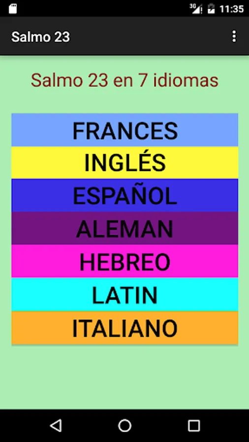 Psalm 23 written in 7 languages: Spanish, English, Latin, Hebrew, French, German and Italian