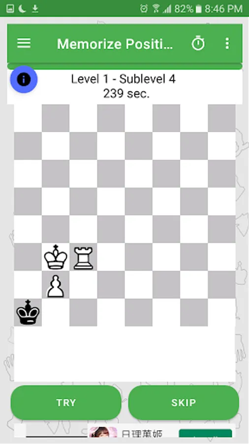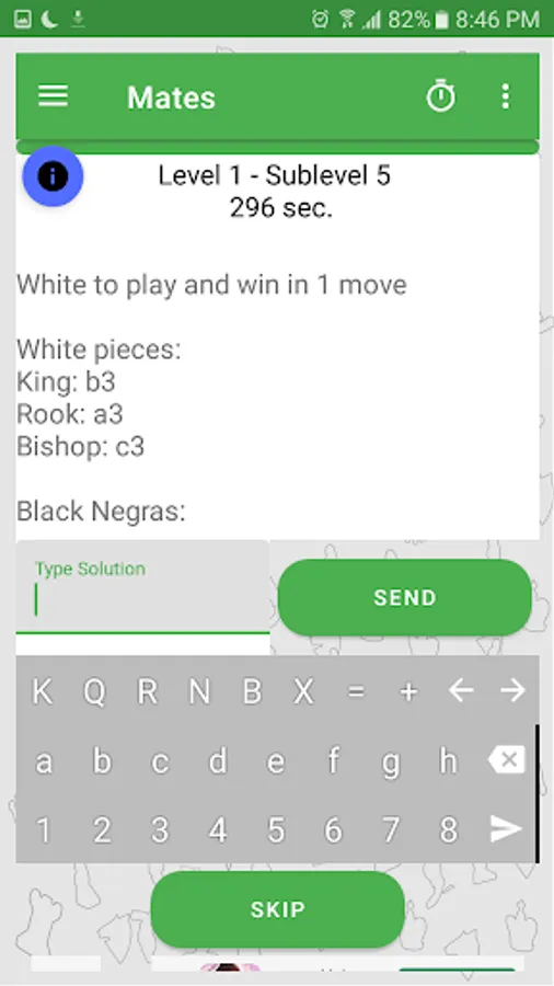 When the game is completed including the timer, a complete chess game will be displayed, and your chess level will rise a lot because you will no longer give away pieces, you can play against opponents without using a board and you can read chess books easily.