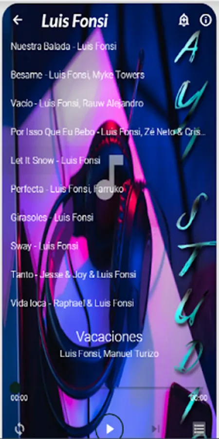 This application contains all latina music from Luis Fonsi -Vacaciones and friends