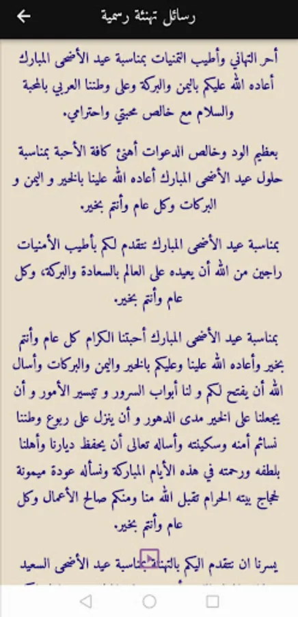 Healthy Eid messages are written, a small application in size, which is updated online periodically and add more Eid al-Adha congratulatory messages.