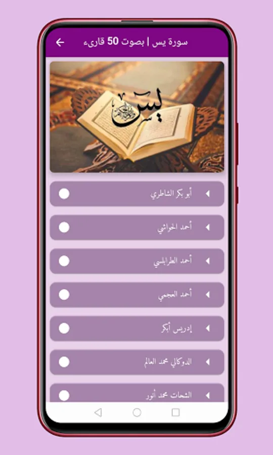 The application of sura yassin with the voice of 50 readers presents you with the most beautiful voices of the readers of the Holy Quran while they are reading sura yassin.
