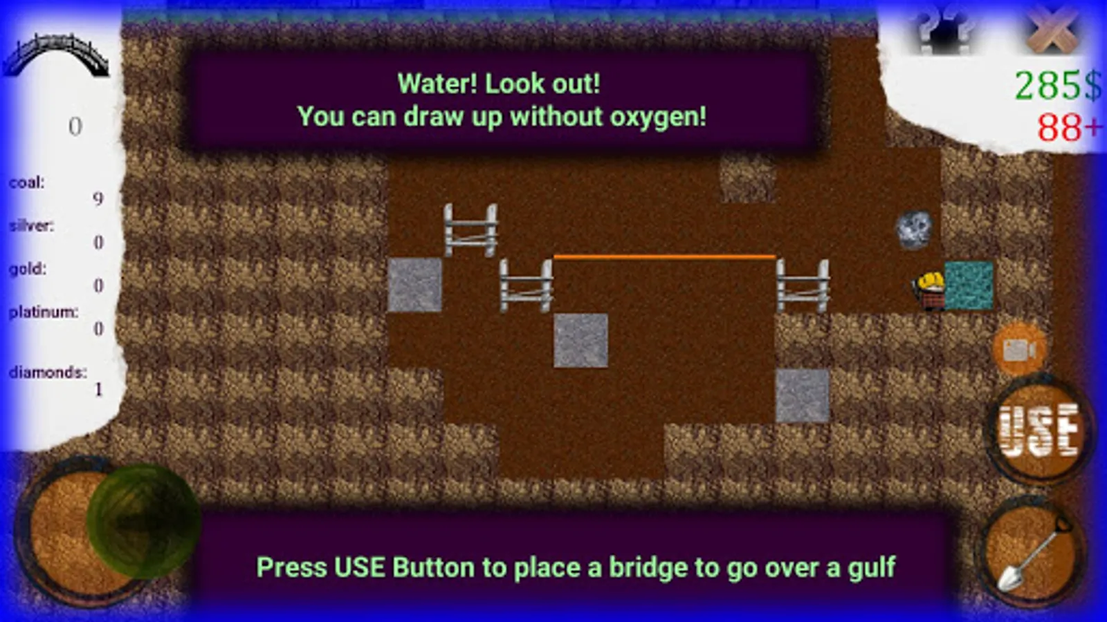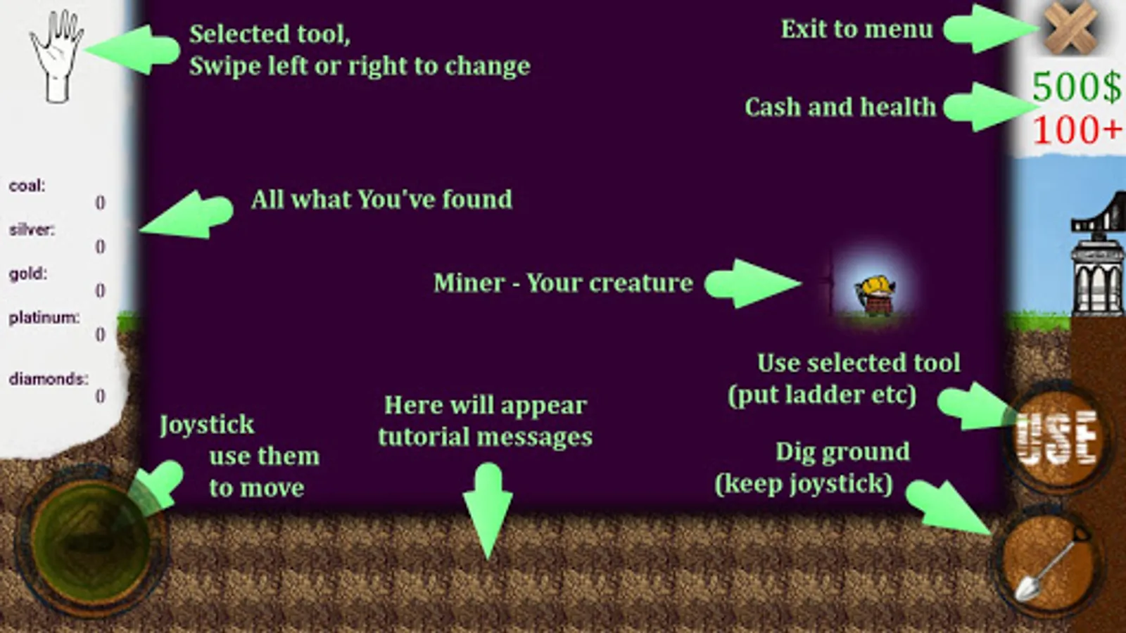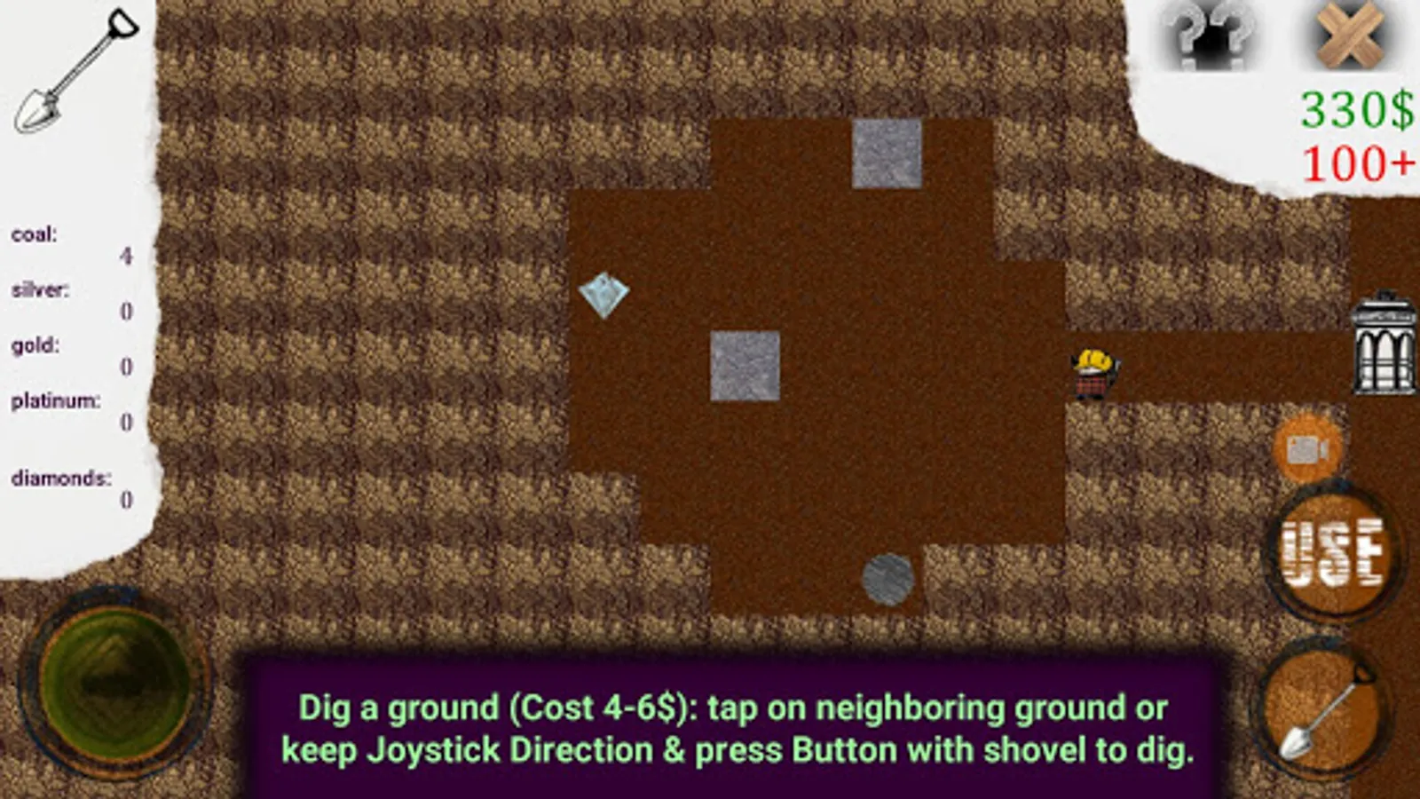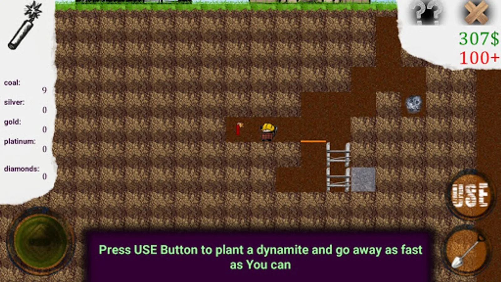 Explore the mine. Find a coal, silver, gold, platinum and diamonds. But look out for a dangerous water sources. Keep Your health on a high level. Buy a few dynamite sticks from time to time and make a booom. But if You wanna to be on the Leaderboard You have to back on the ground and sell something in the bank, Your cash is Your score!