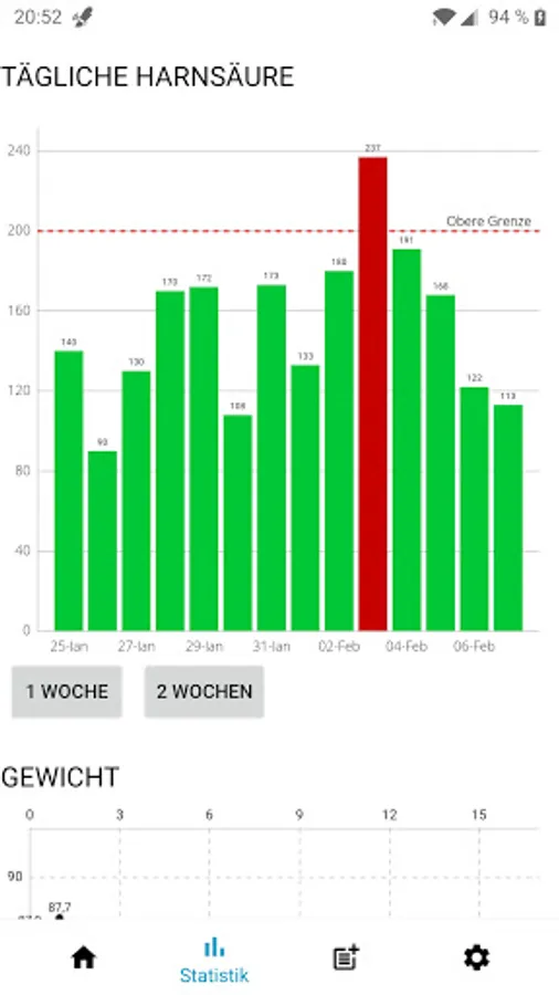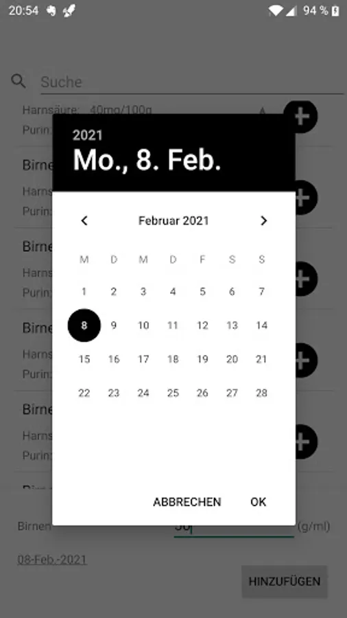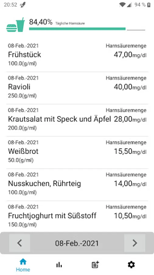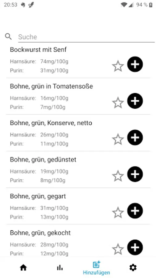 - Free setting of the maximum personal purine values (to be clarified by a doctor)