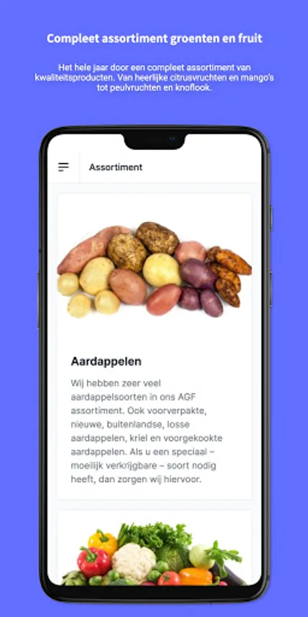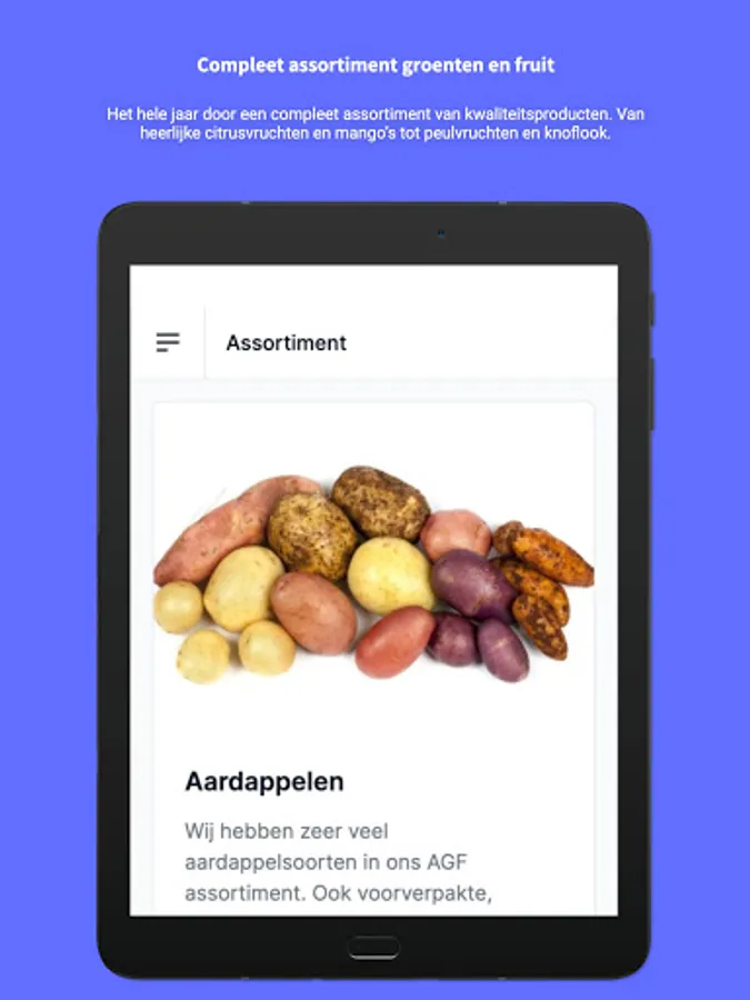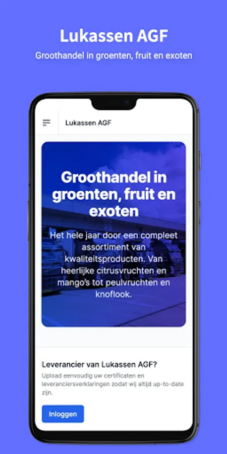 Wholesale of vegetables, fruit and exotics. With the app you have all the information at your fingertips. As a supplier of Lukassen AGF you can easily upload your certificates and declarations.