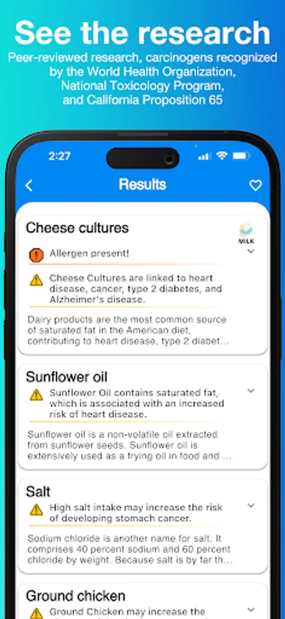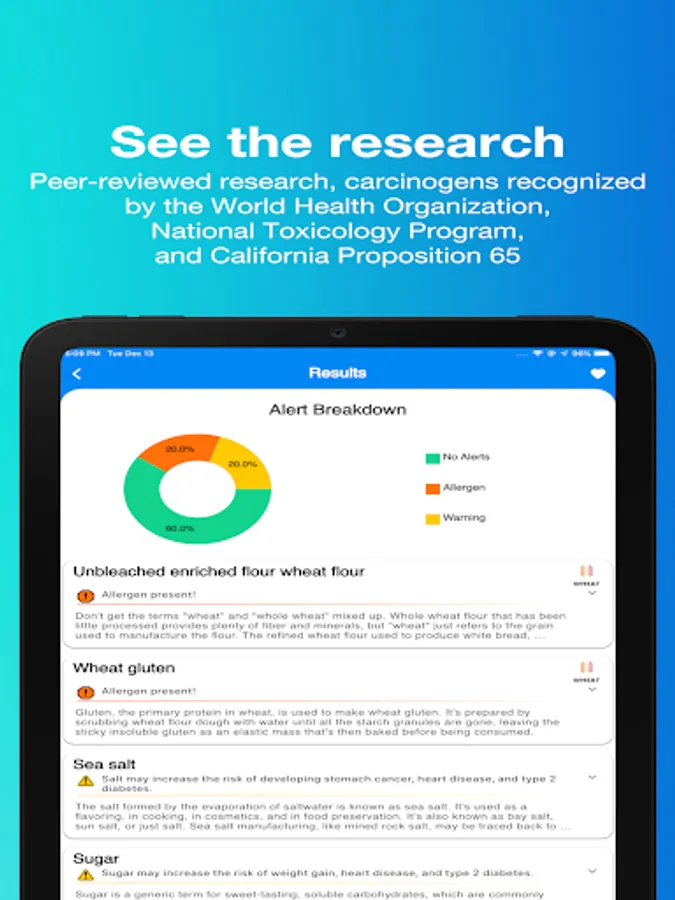 IngredientScan also checks the scanned ingredients against the World Health Organization, National Toxicology Program, and California Prop 65 carcinogen lists to ensure you're alerted to harmful ingredients.