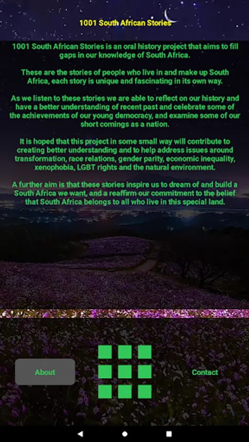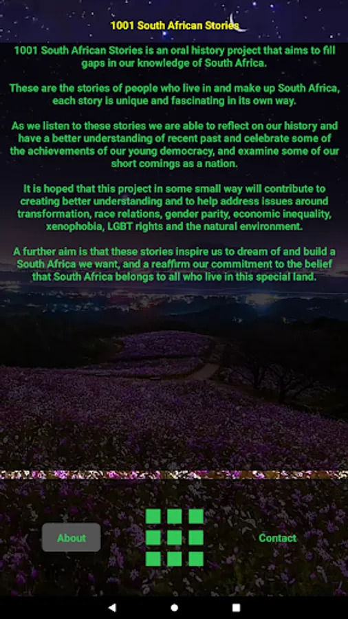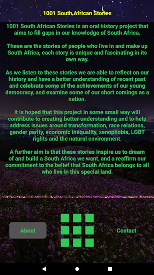 These are the stories of people who live in and make up South Africa, each story is unique and fascinating in its own way. As we listen to these stories we are able to reflect on our history and have a better understanding of recent past and celebrate some of the achievements of our young democracy, and examine some of our short comings as a nation.