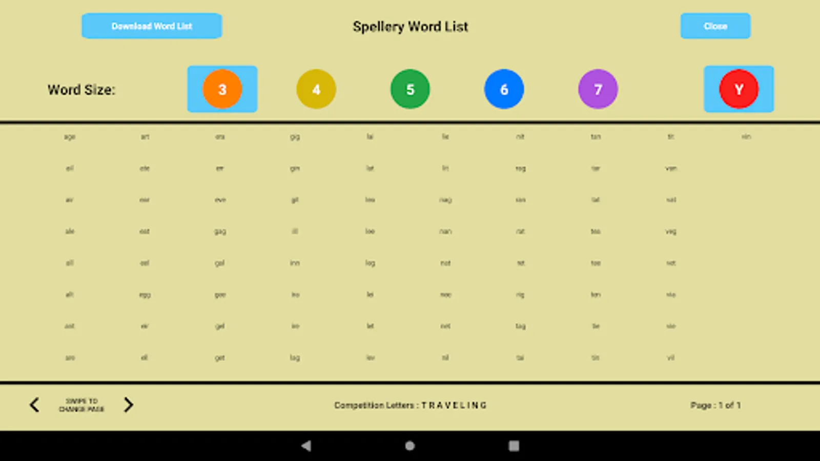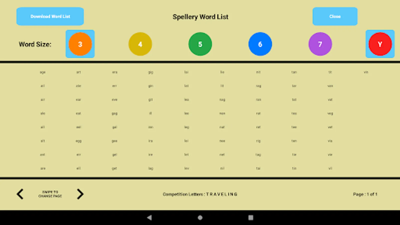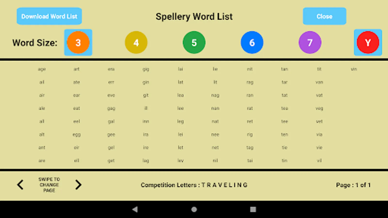 - generate and download a Word List for any set of 9 Competition Letters for learners to study. The app includes an in-built dictionary of 93000 words,