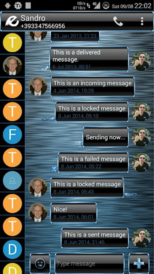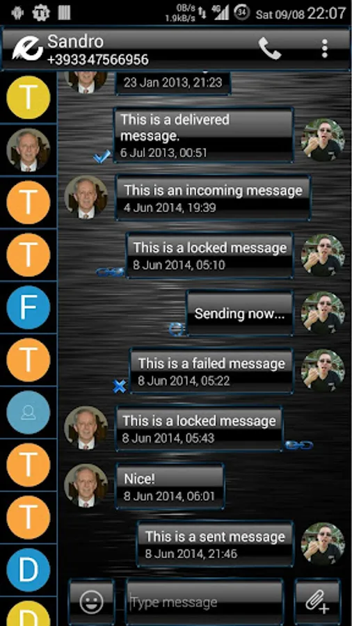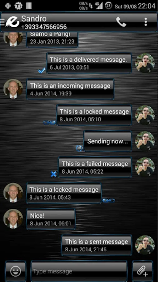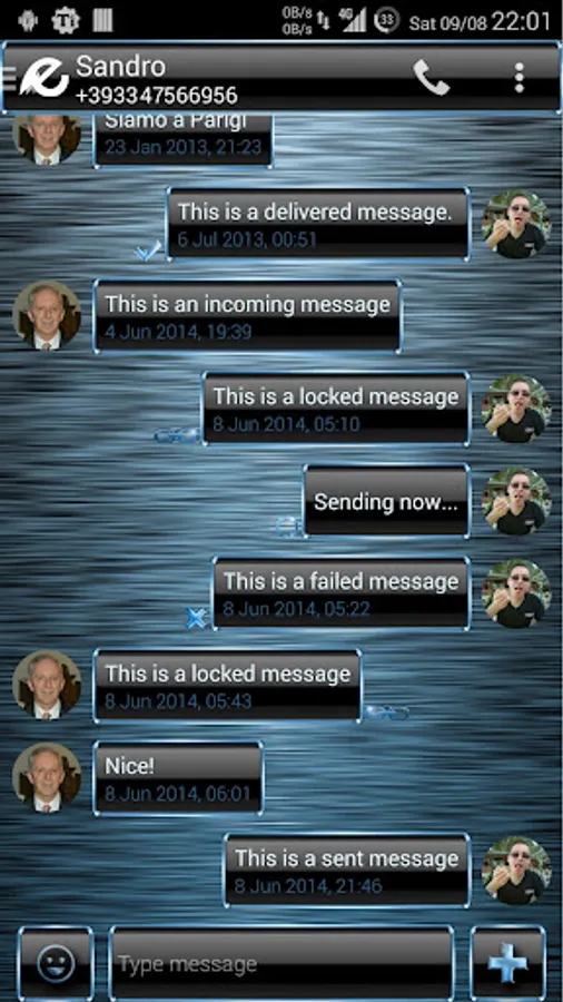 - Night and Day Modes: this theme support Night Mode. Enable the Night Mode in EvolveSMS settings.