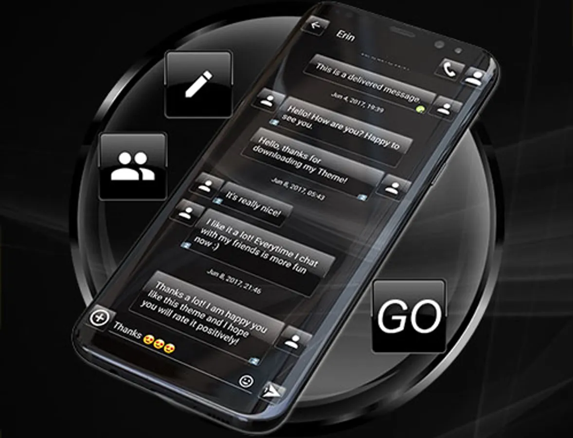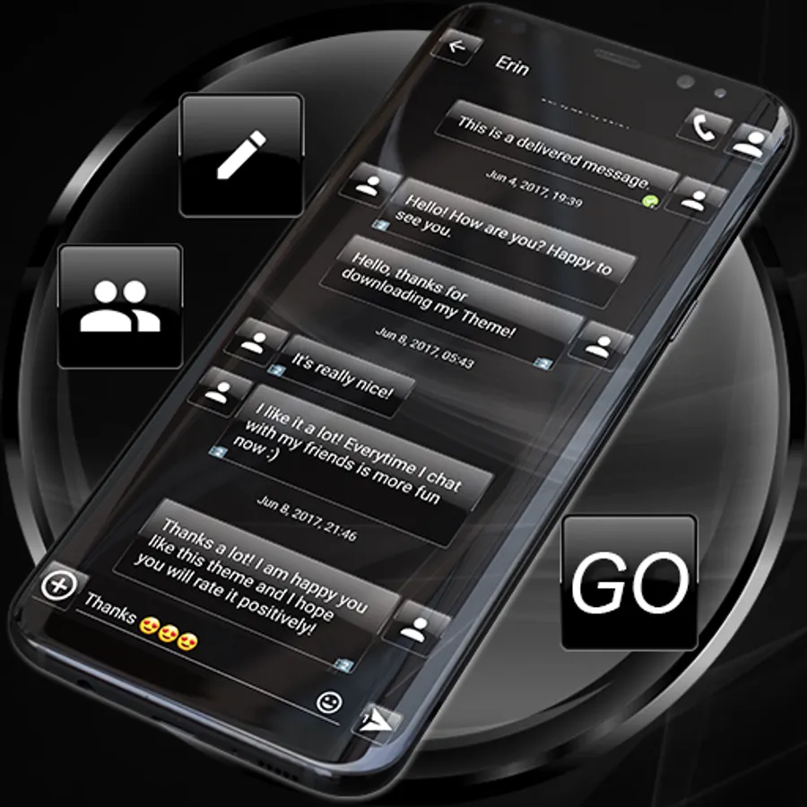 ⚫When using our GO SMS Themes and Skins you get all the features of the GO SMS Pro messaging application: a smart and colorful SMS black app for Android to send end receive texts and MMS to any phone. It is the best and more popular messenger app able to send Emoji too. Its features include:
