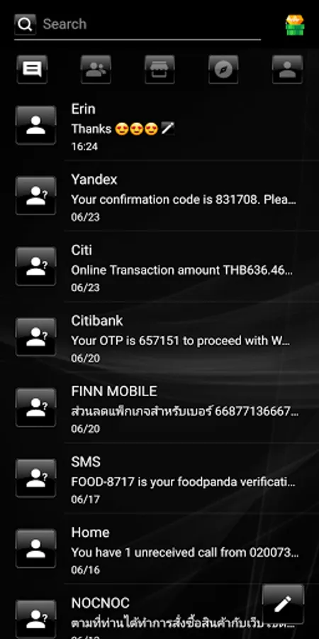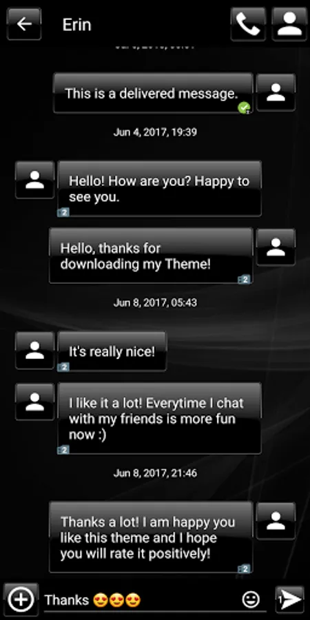 - open the sms themes free app and click Apply button: each text message will be replaced with the new custom design of this dark black SMS theme free.