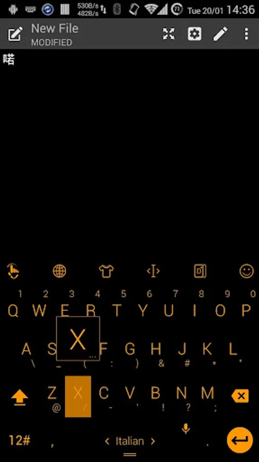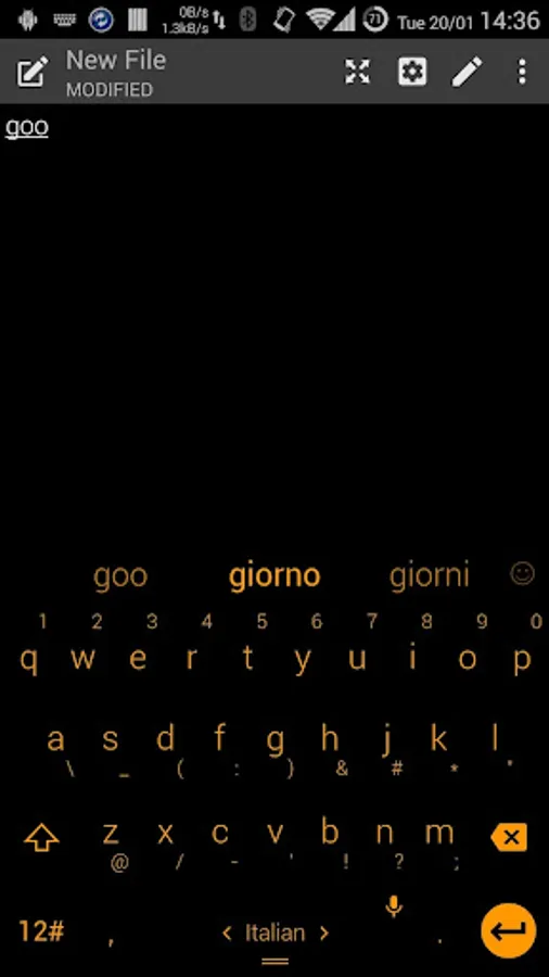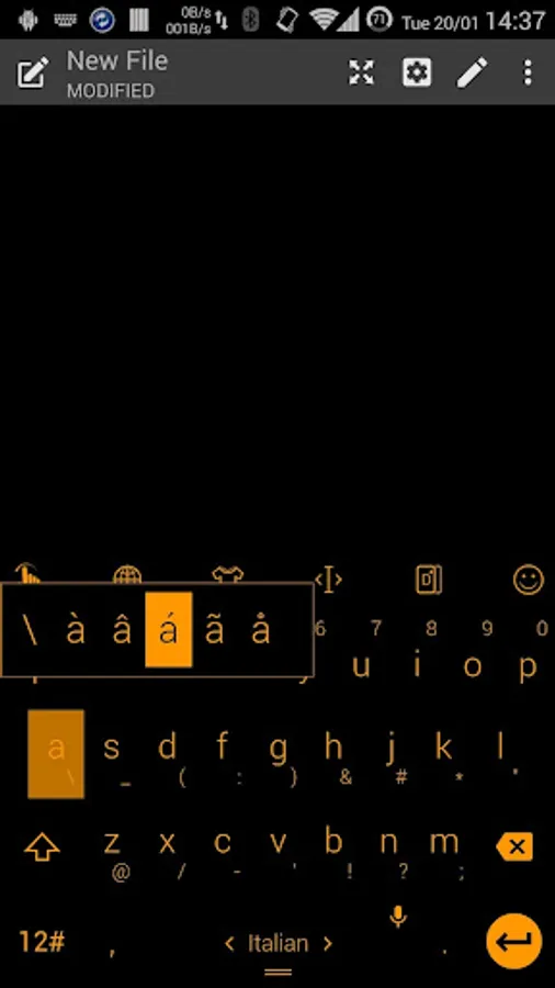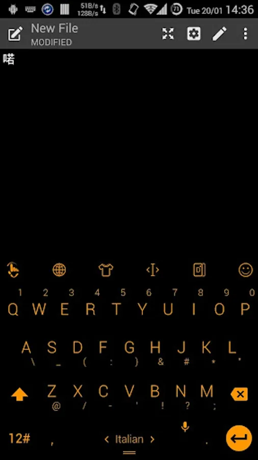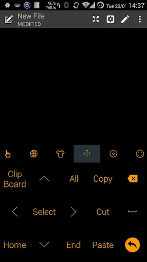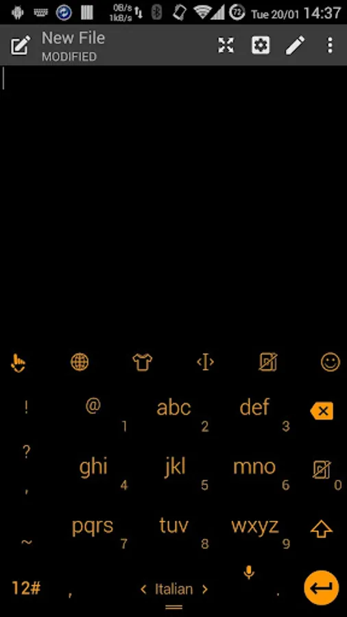This is a theme with borderless buttons and orange text with black background for AnySoftKeyboard application.