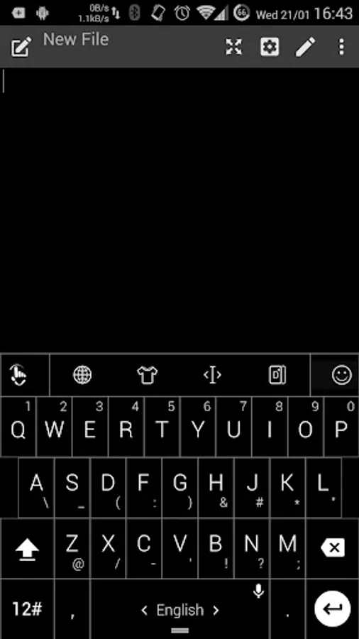 This is a theme with white keys with thin borders over a black background for AnySoftKeyboard application