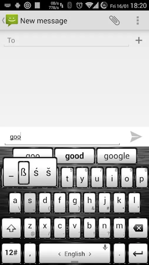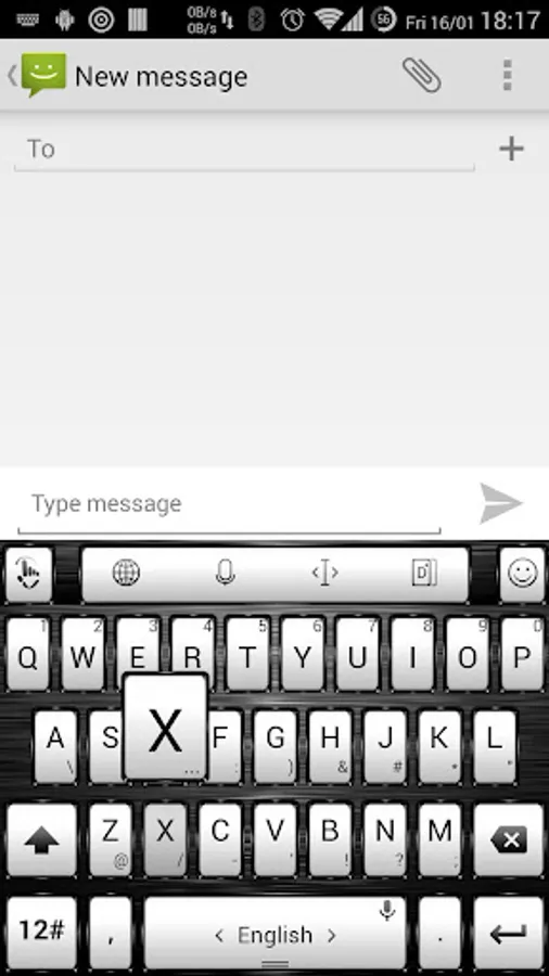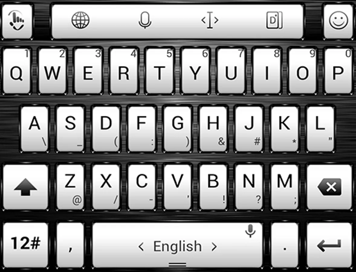 This is a theme with white ivory keys and black metal frame over a brushed metal background for AnySoftKeyboard application