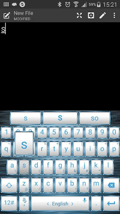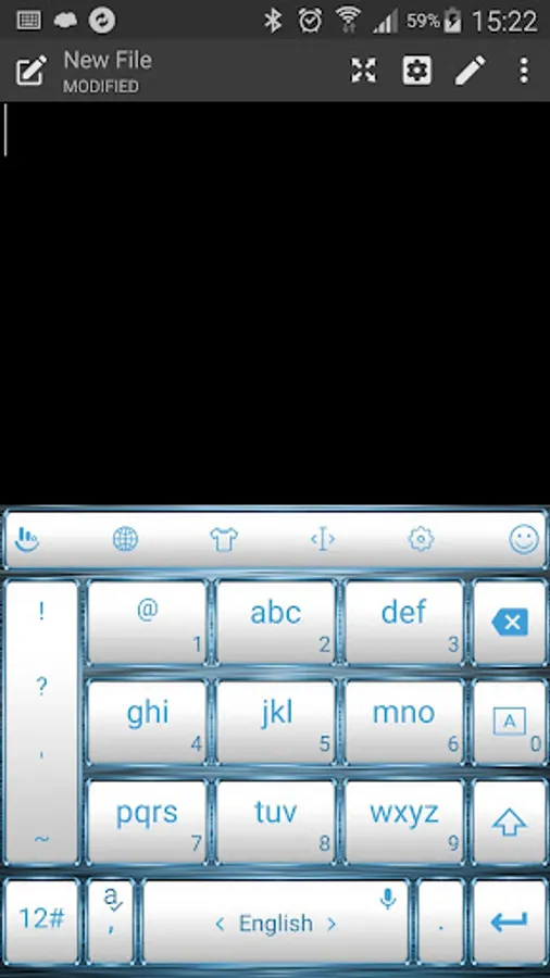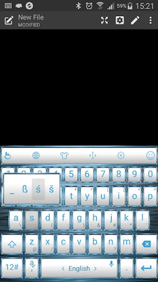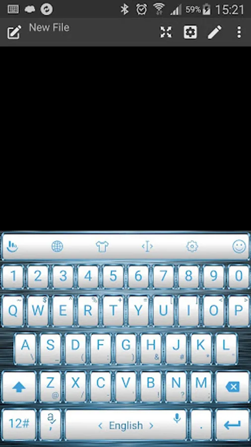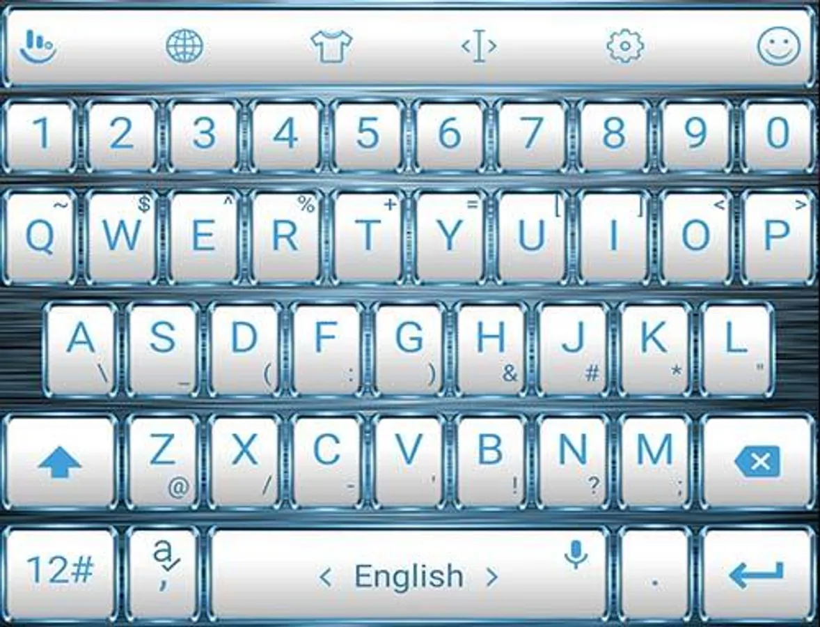 This is a theme with white ivory keys and blue metal frame over a brushed metal background for AnySoftKeyboard application
