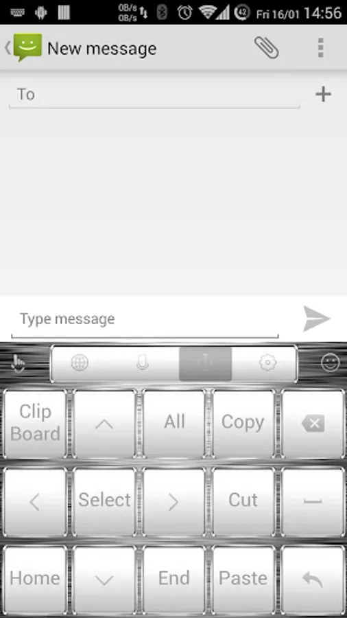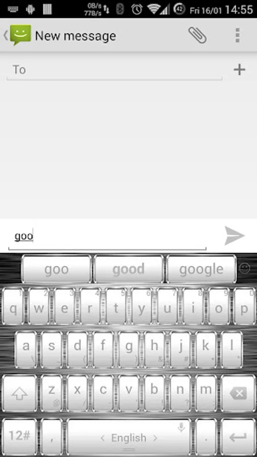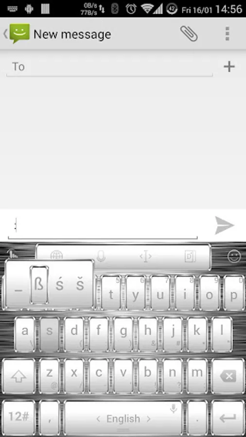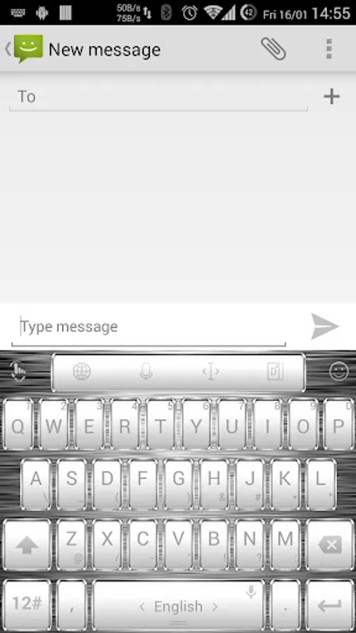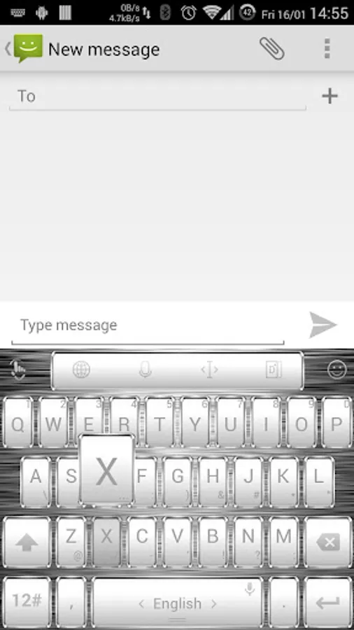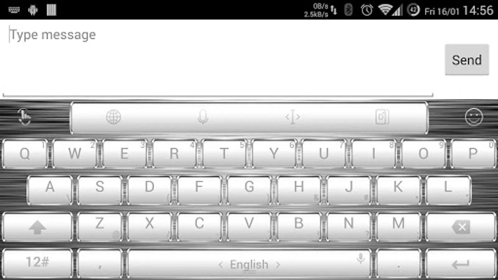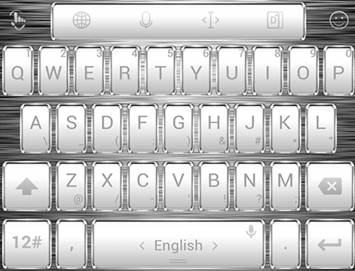 This is a theme with white ivory keys and silver metal frame over a brushed metal background for AnySoftKeyboard application