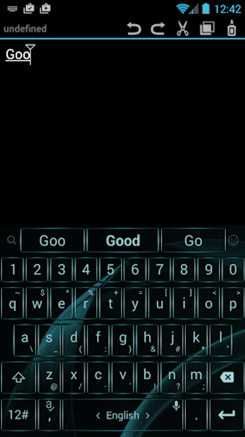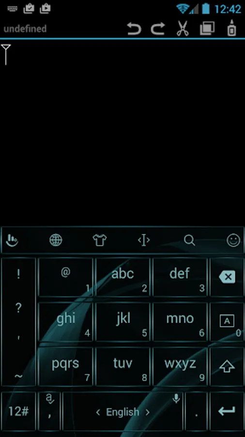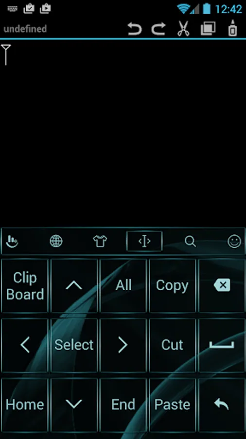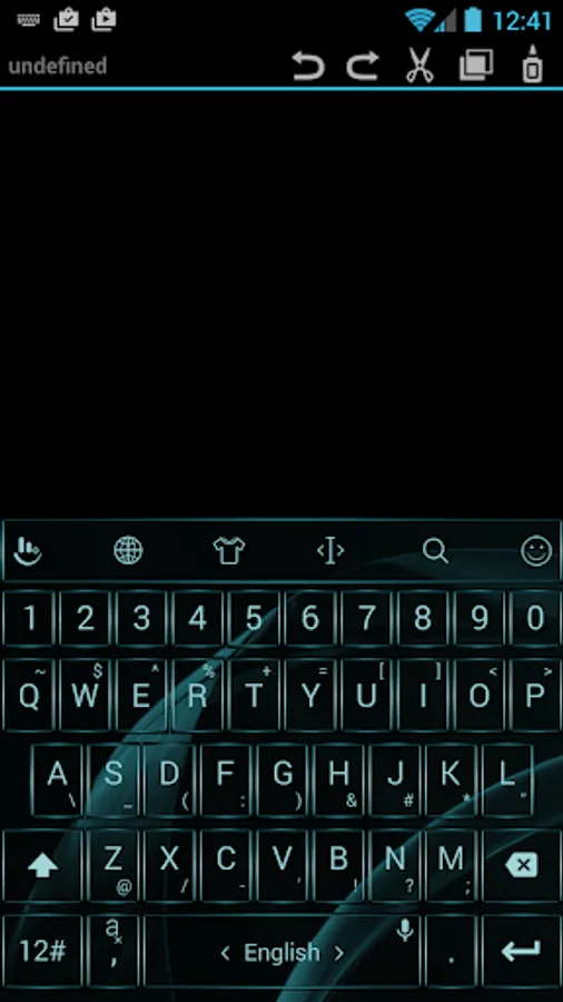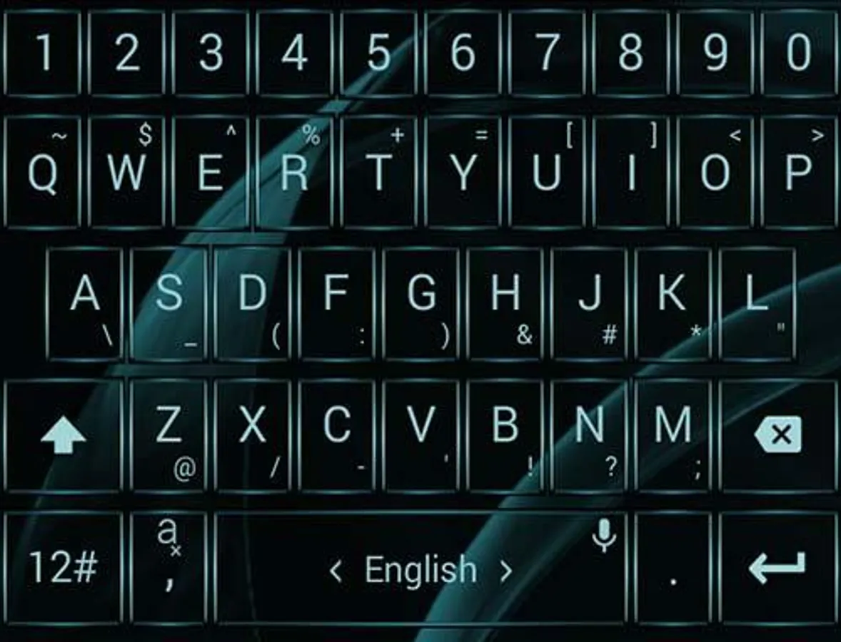 This is a theme with metallic aquamarine frame buttons and black background for AnySoftKeyboard application