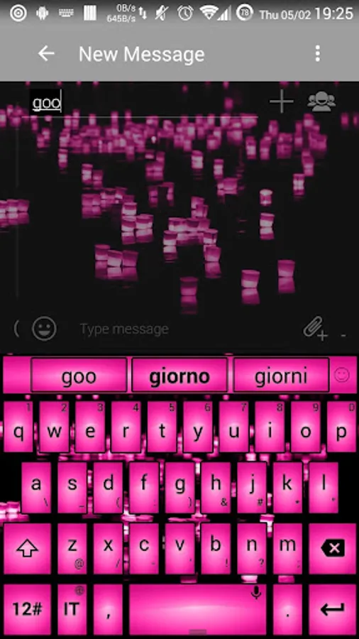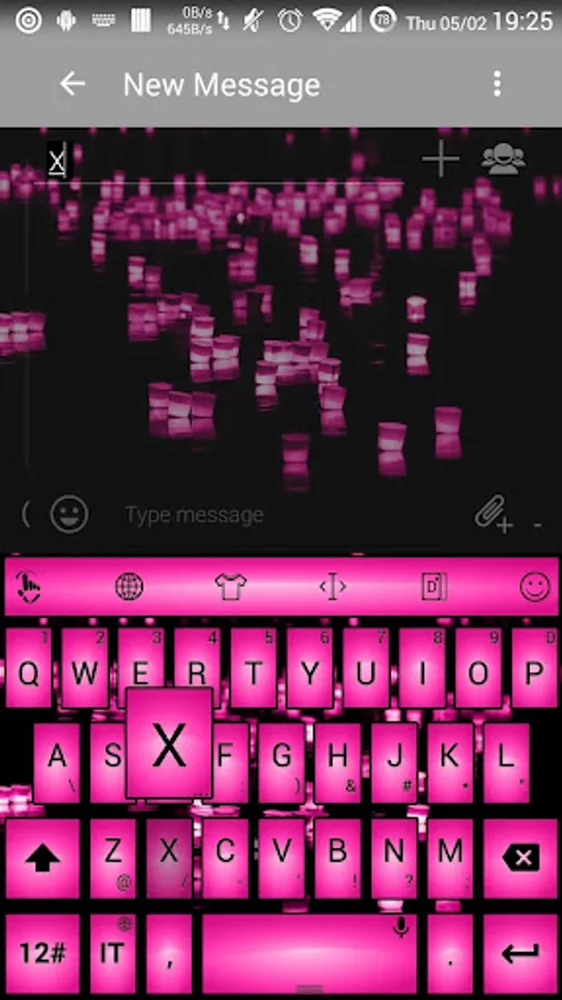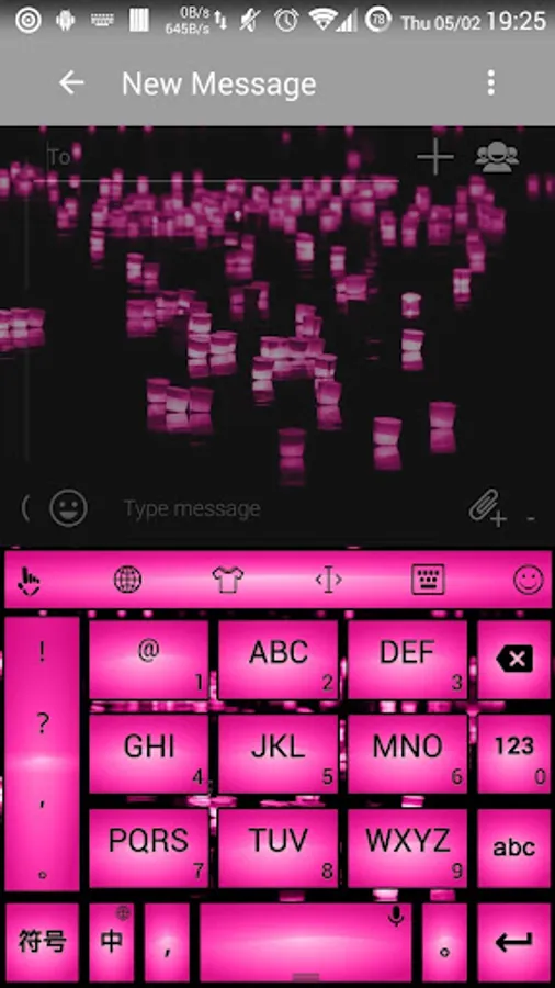 This is a theme with purple fuchsia square buttons over led neon pink candles on river at night background for AnySoftKeyboard application