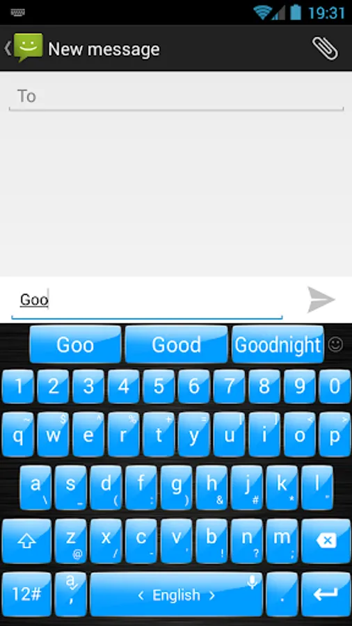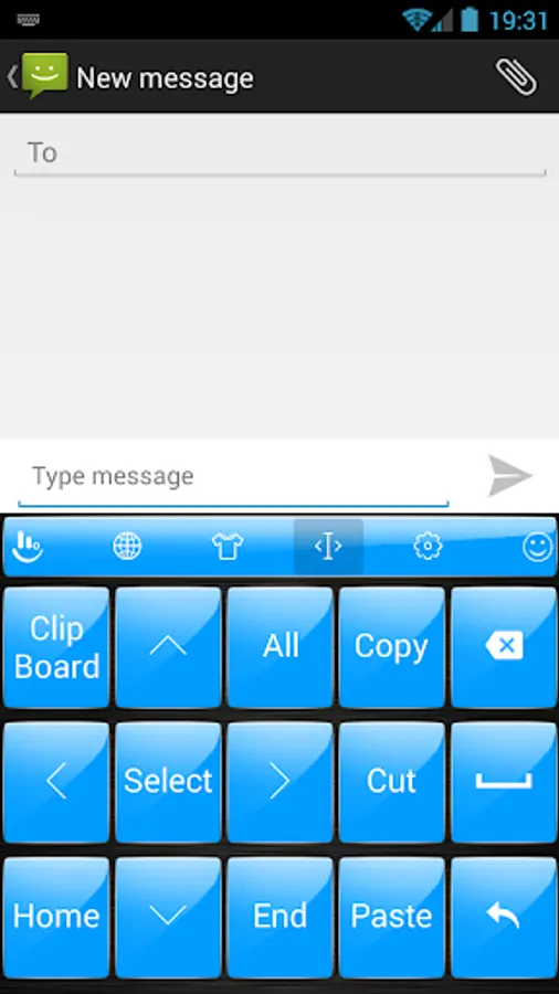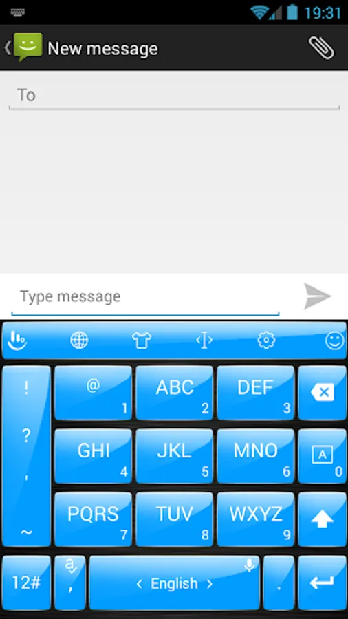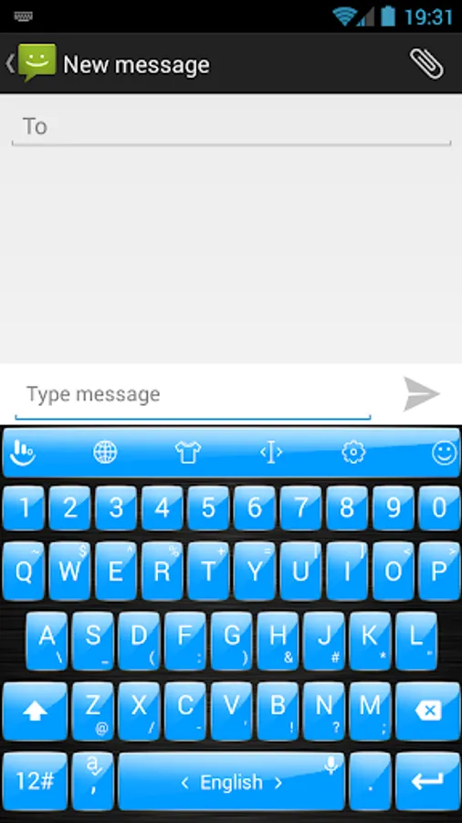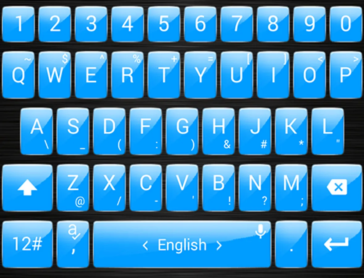 This is a theme with a brushed metal chrome background and glass Azure Blue keys for AnySoftKeyboard application