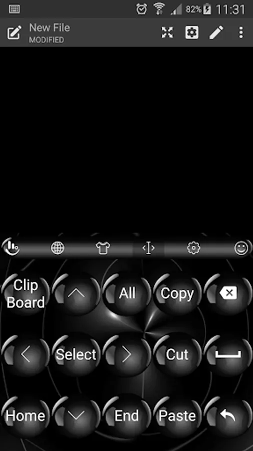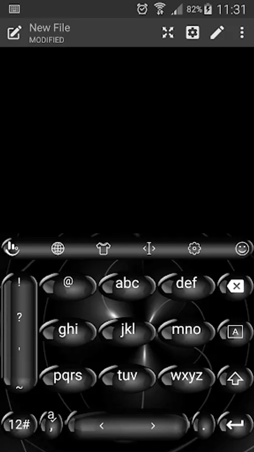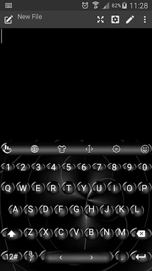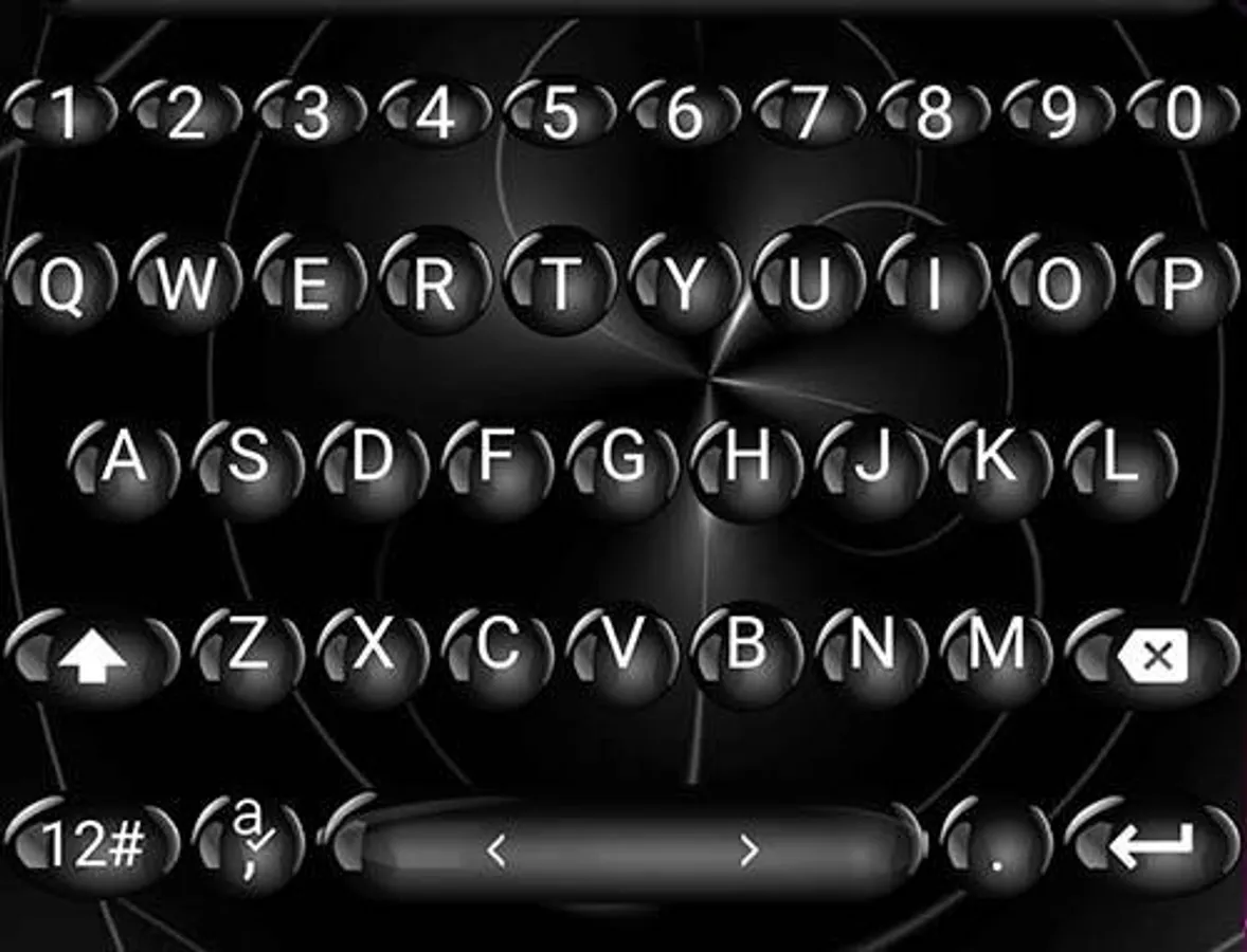 This is a theme with black circle spherical keys over a dark black shiny background for AnySoftKeyboard application