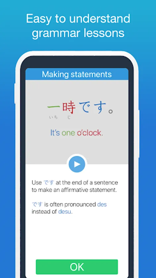 - Writing lessons with all Hiragana and Katakana.