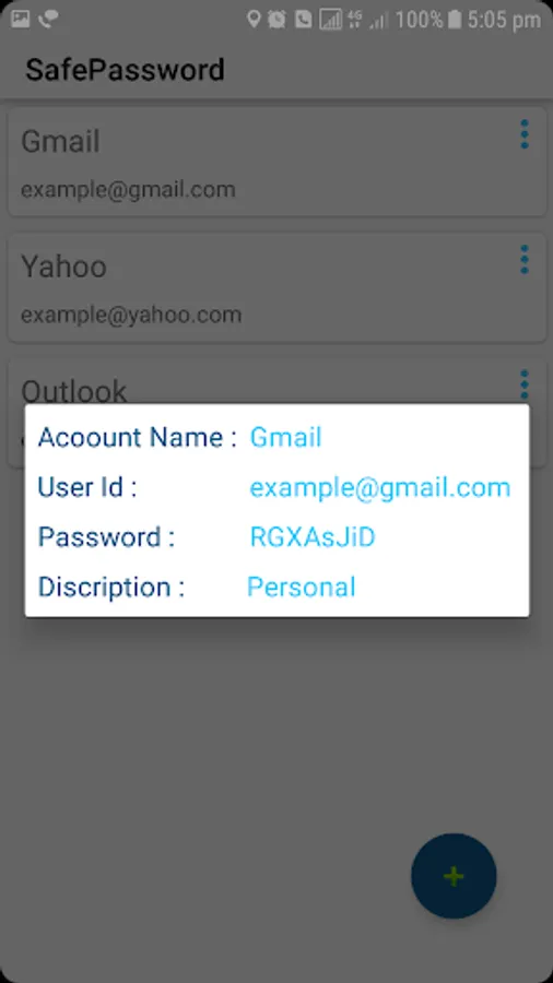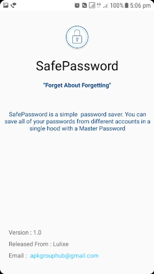 Safe Password is a simple password saver. You can save all of your passwords from different accounts in a single hood with a Master Password.