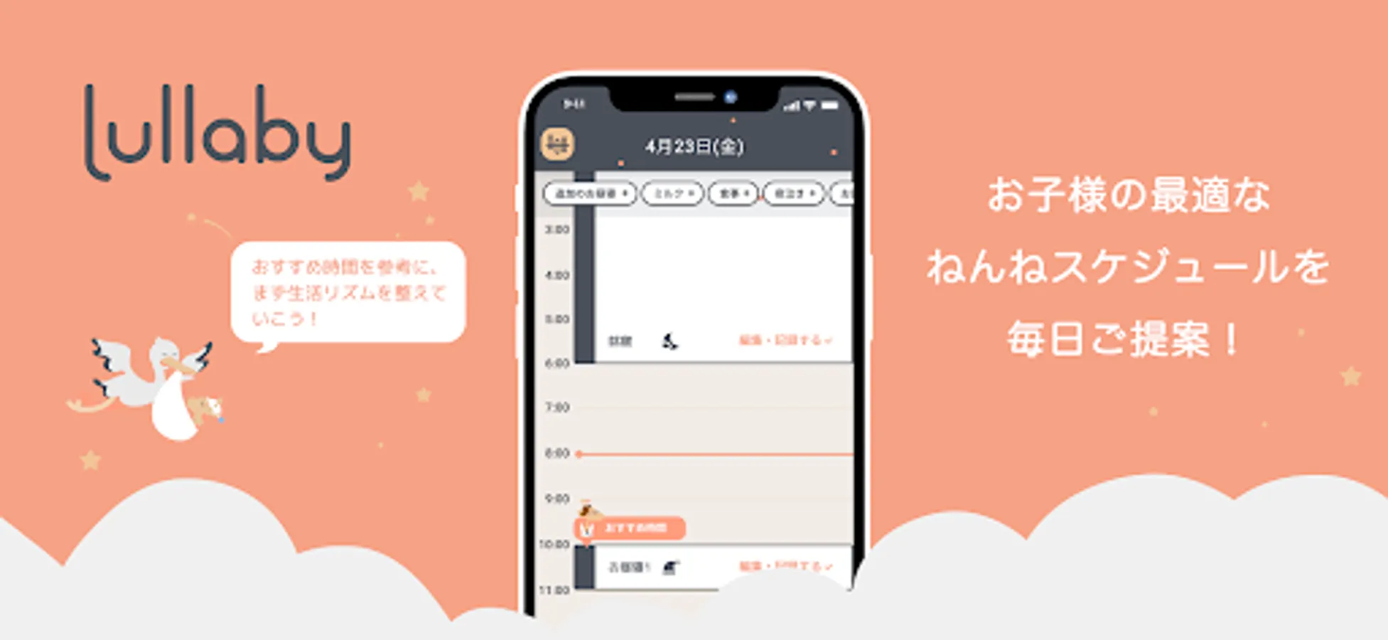 ・ We will deliver the best bedtime schedule for babies according to their age every day. Lullaby proposes an optimal schedule (adaptive schedule) based on the real-time sleep time of the baby that day.