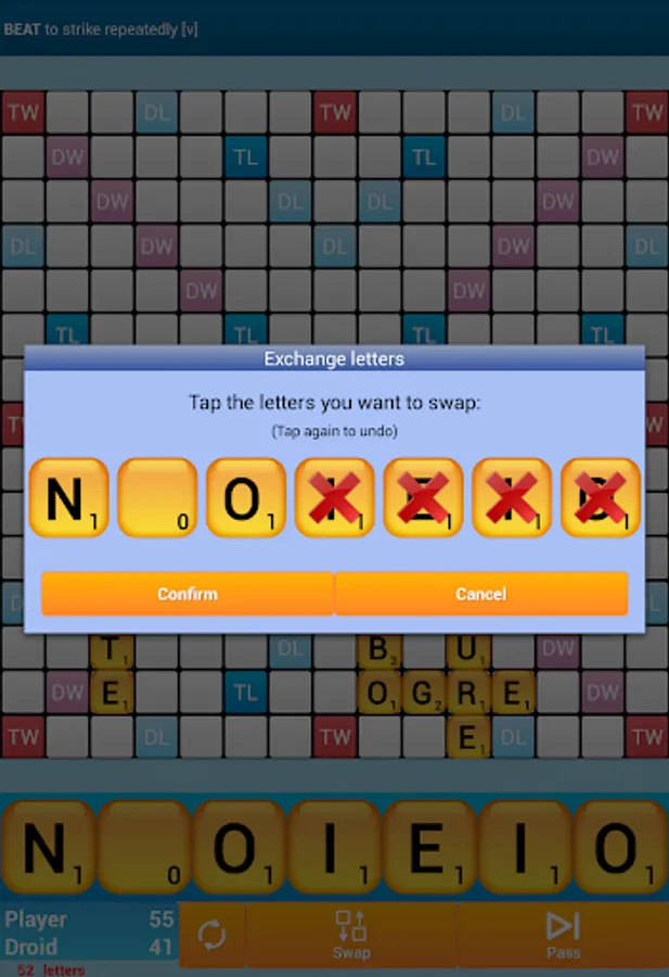 Use all 7 letters from your rack to play a Bingo and get a 50 points bonus.