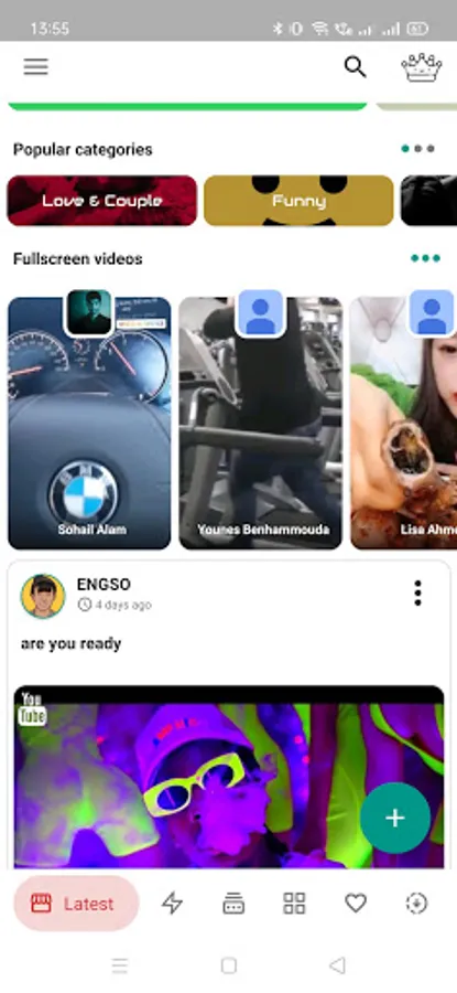 lulia Video Status app for WhatsApp Status provides latest feed of video status songs which will show you all the latest videos uploaded by friends/family and all users whom you watch and follow in lulia app. Latest feed of video status will show you current trending status song videos.