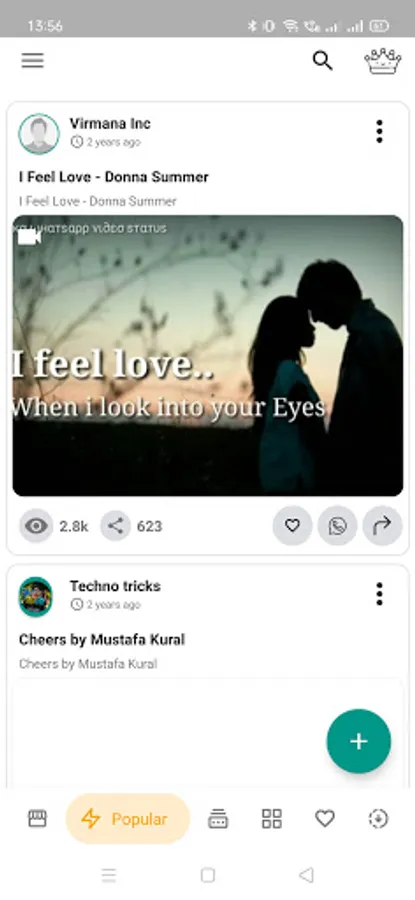 lulia app contains category 'Popular' in which you can see most viewed , liked and shared video song status of all users of lulia app.