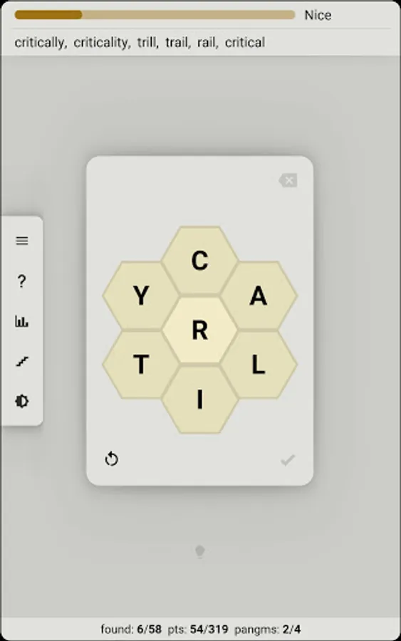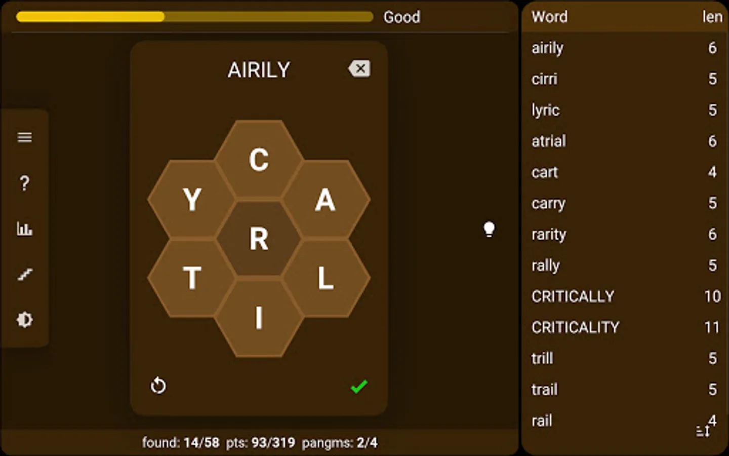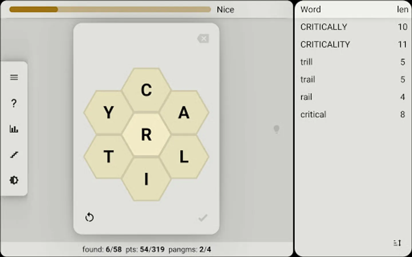 * Play the daily NYT spelling bee game, with more helpful info such as number of words by length, number of pangrams, etc.