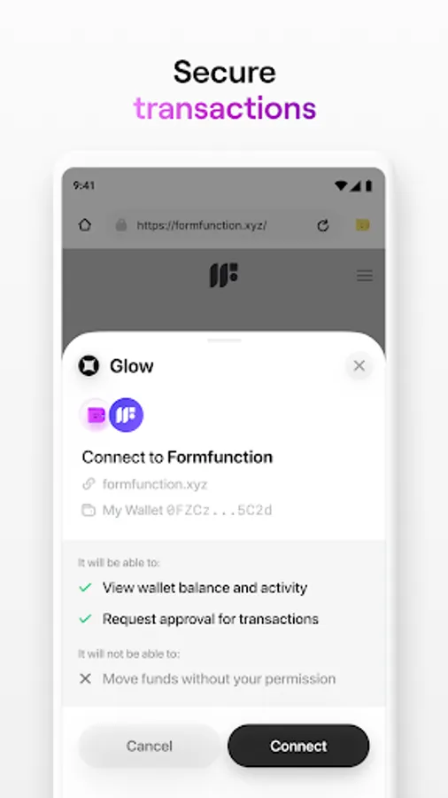 - Glow simulates all transactions before you submit them to check for any malicious activity and will automatically block suspicious requests.