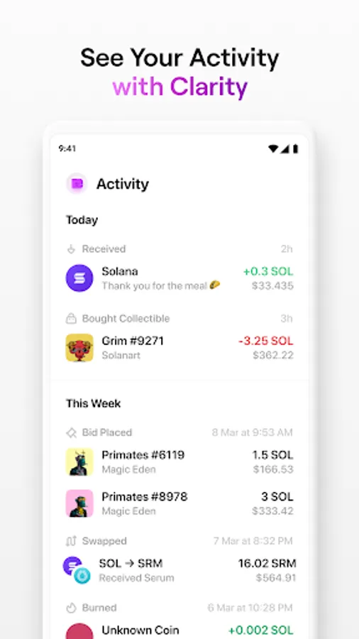 Glow is the easiest way to get started on Solana. Set up your wallet in seconds to manage your assets, browse coins and collectibles, and transact effortlessly.
