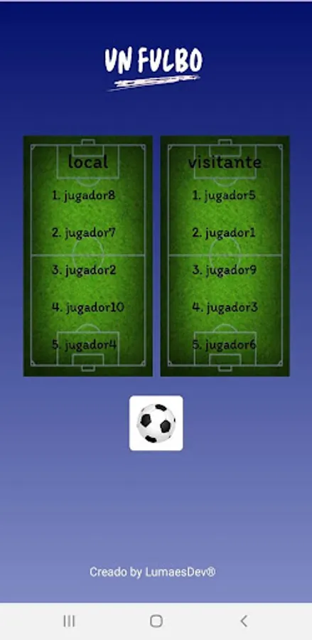 🔀 Team Draw in Seconds: Forget traditional team selection methods. With "Un Fulbo", you simply enter the number of players and let the app do the heavy lifting for you. Within seconds, you'll have teams balanced and game-ready!