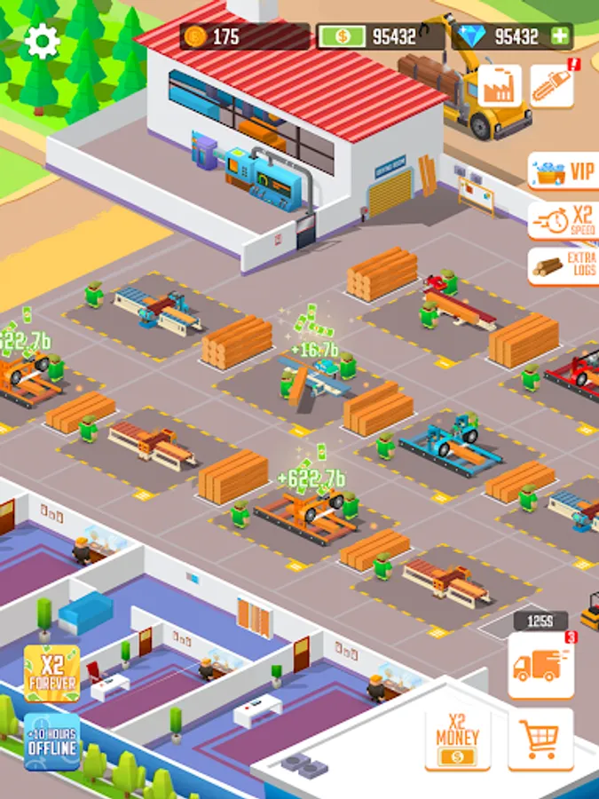 Welcome to Idle Lumber Empire - a brand new idle clicker game. In this idle simulation game, you start running a small sawmill and working hard to manage, expand your factory to chase big dream: building lumber empire!