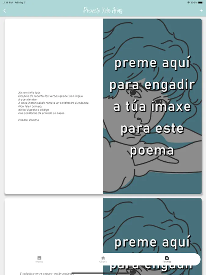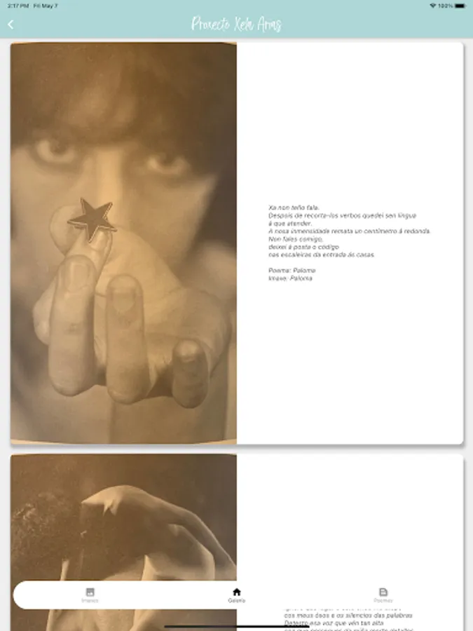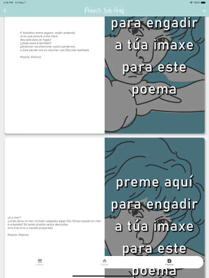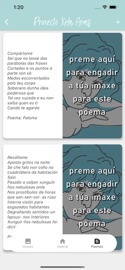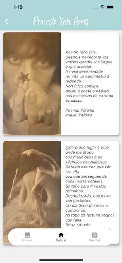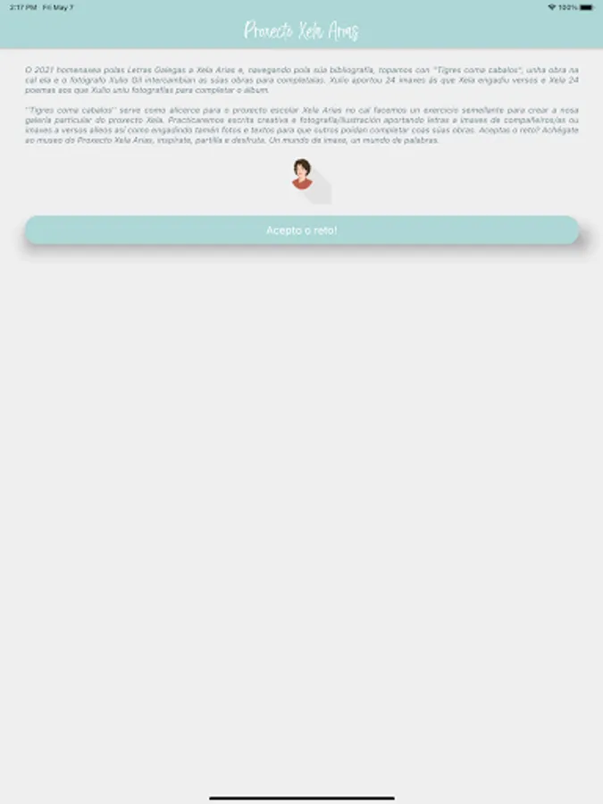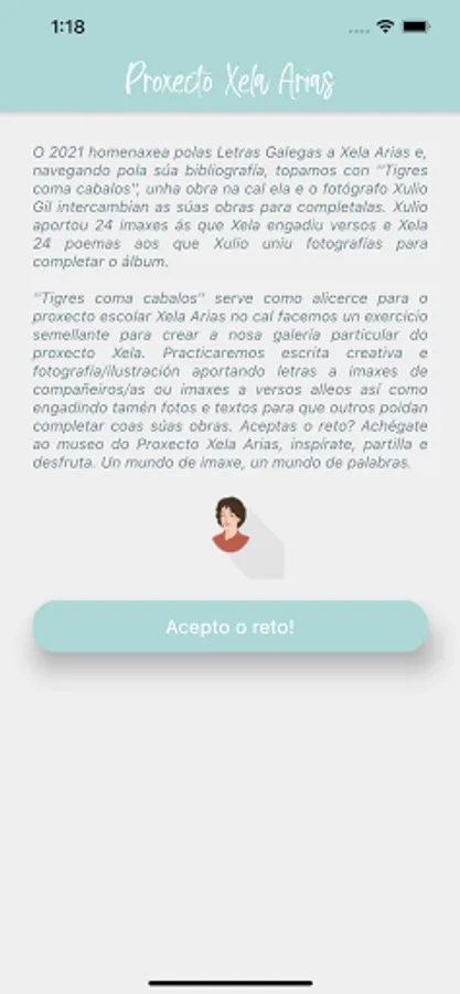 O 2021 homenaxea polas Letras Galegas a Xela Arias e, navegando pola súa bibliografía, topamos con Tigres coma cabalos, unha obra na cal ela e o fotógrafo Xulio Gil intercambian as súas obras para completalas. Xulio aportou 24 imaxes ás que Xela engadiu versos e Xela 24 poemas aos que Xulio uniu fotografías para completar o álbum. Tigres coma cabalos serve como alicerce para o proxecto escolar Xela Arias no cal facemos un exercicio semellante para crear a nosa galería particular do proxecto Xela. Practicaremos escrita creativa e fotografía/ilustración aportando letras a imaxes de compañeiros/as ou imaxes a versos alleos así como engadindo tamén fotos e textos para que outros poidan completar coas súas obras. Aceptas o reto? Achégate ao museo do Proxecto Xela Arias, inspírate, partilla e desfruta. Un mundo de imaxe un mundo de palabras.