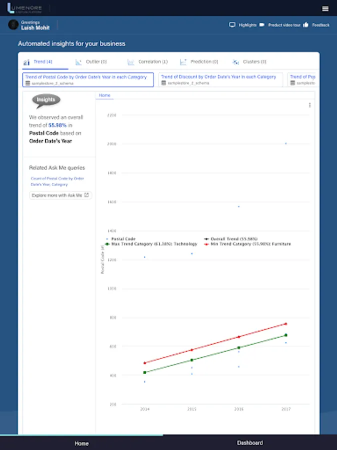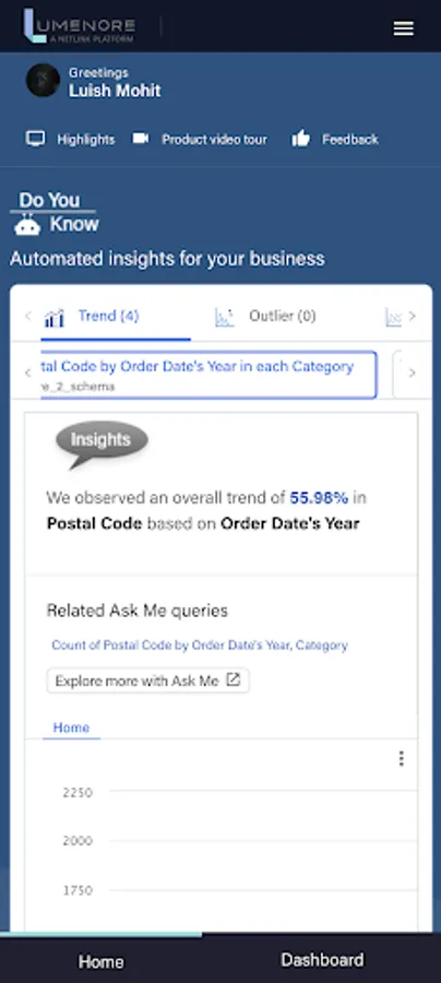 Lumenore empowers your entire team to derive insights from raw data, give you a transparent view of your operations and help you drive successful business outcomes. See the big picture or drill down to the smallest details, all in real-time.