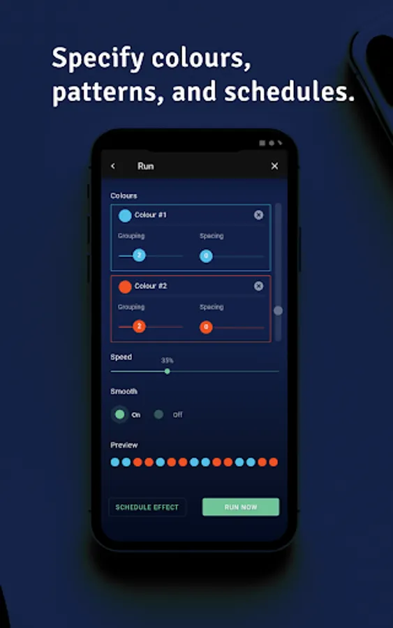 Control your Lumenox permanent LED smart lighting. Choose patterns and effects, set schedules, and organize the lights on your home.