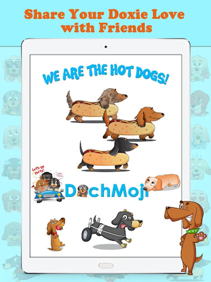 Made by weenie dog lovers for weiner doggie lovers, and their family and friends. We have included a variety of doxie puppies as possible, and will continue adding more doggies designs to the DachMoji collection to ensure you get the most of the app.