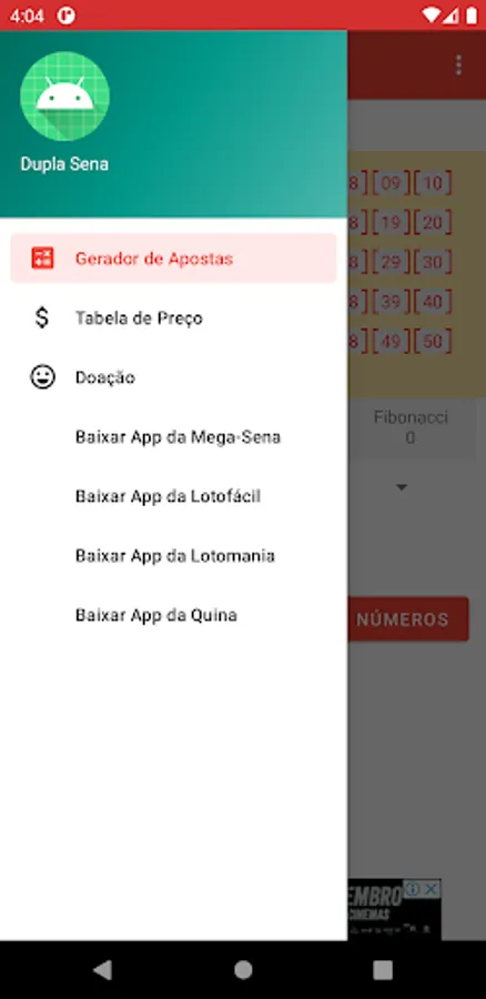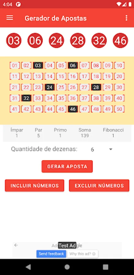 The application allows you to randomly generate bets. You can select the number of tens you want (from 6 to 15 tens).