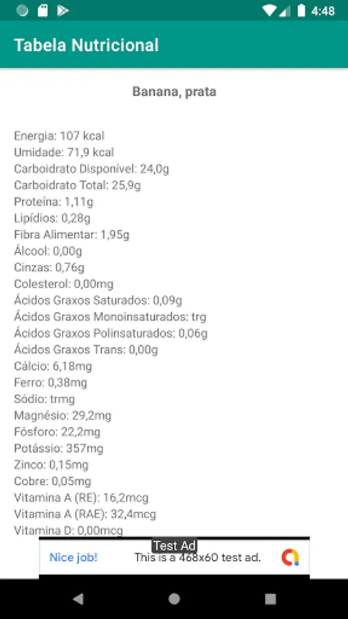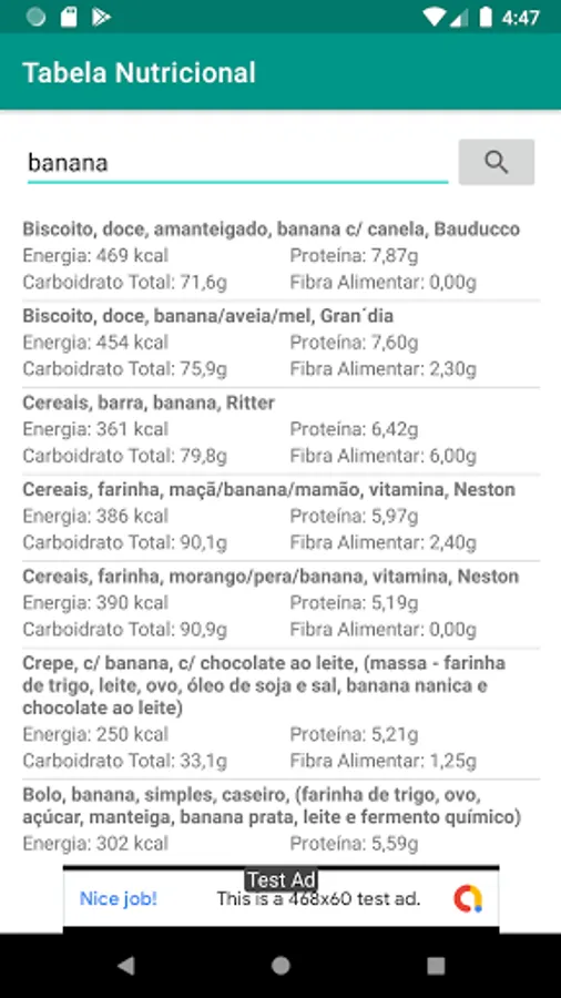 Nutritional Table with TBCA data (Brazilian Table of Food Composition). Food data such as: calorie, carbohydrate, fat, protein, vitamins, etc. is brought.