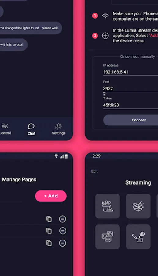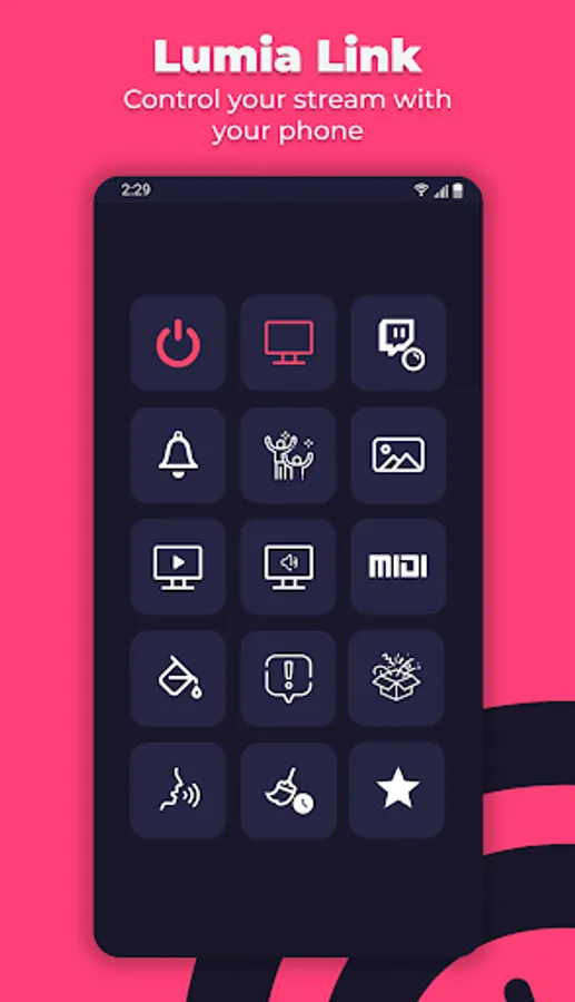 Lumia Stream Link connects to the Lumia Stream Desktop app and gives you full mobile control over your setup.Change your lights with the click of a button, change your OBS setup, send a chat message, or even use your device as a virtual light.You can do it all with Lumia Stream Link