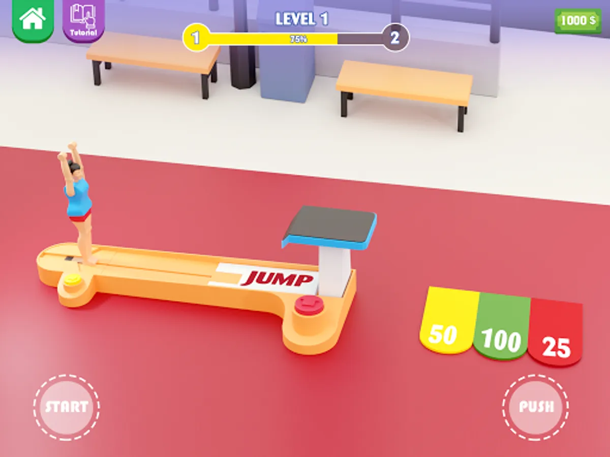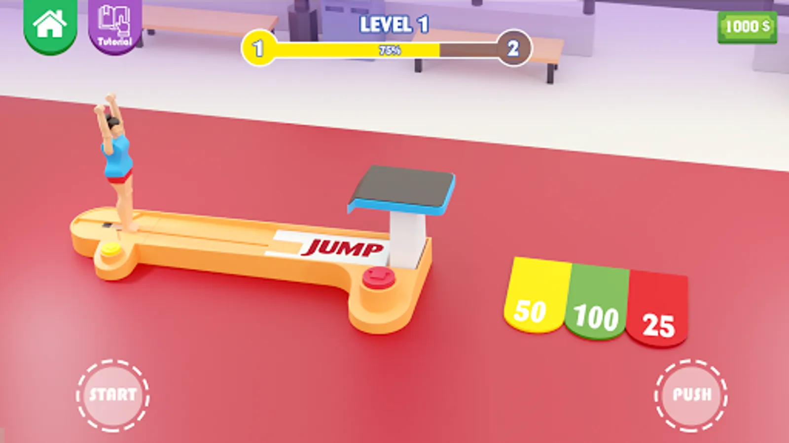 Players have to pay attention to the slide power tracker. Wait for the best slide power and hit the SLIDE button to slide the gymnast toward the vault.The gymnast then jumps on the vault and make a beautiful upside down swing. Now wait for the right moment and hit PUSH button to trigger the vault and push the gymnast to the air. The gymnast will perform a charming fly before hitting on the best landing pad. Tadaaa, You get the perfect score with splendid reward. Enjoy your winning moment and prepare for the next round.