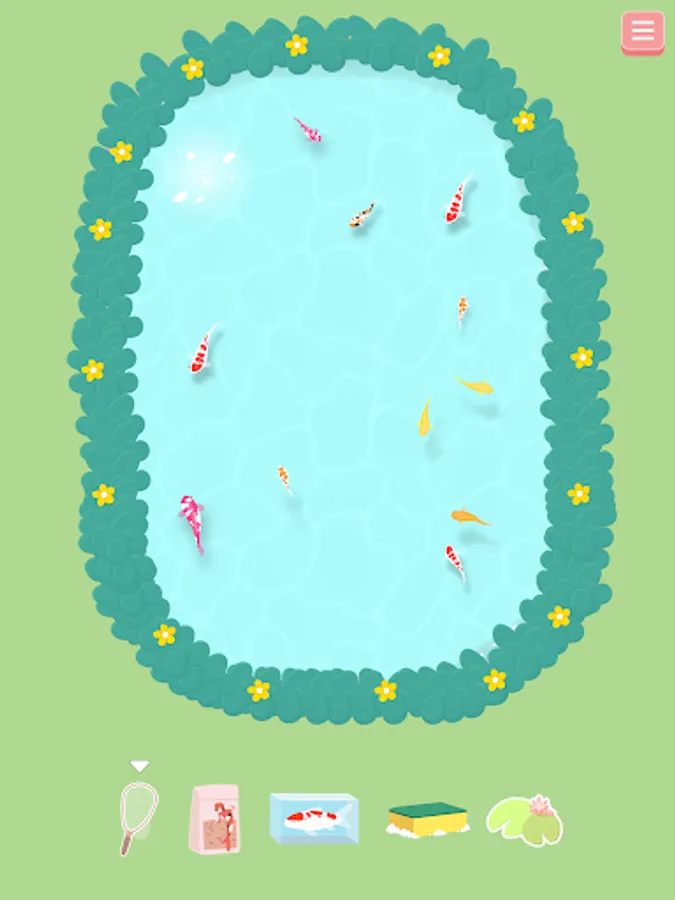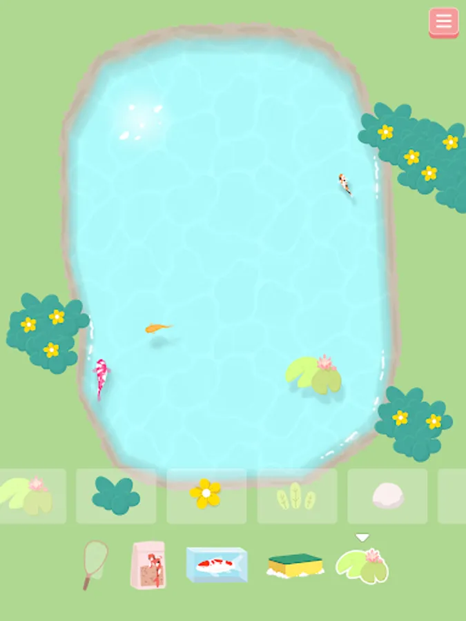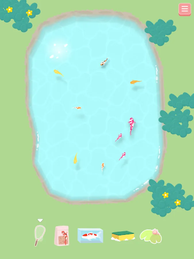 Choose the type of koi fish you want to drop into the pond and watch them grow over time.