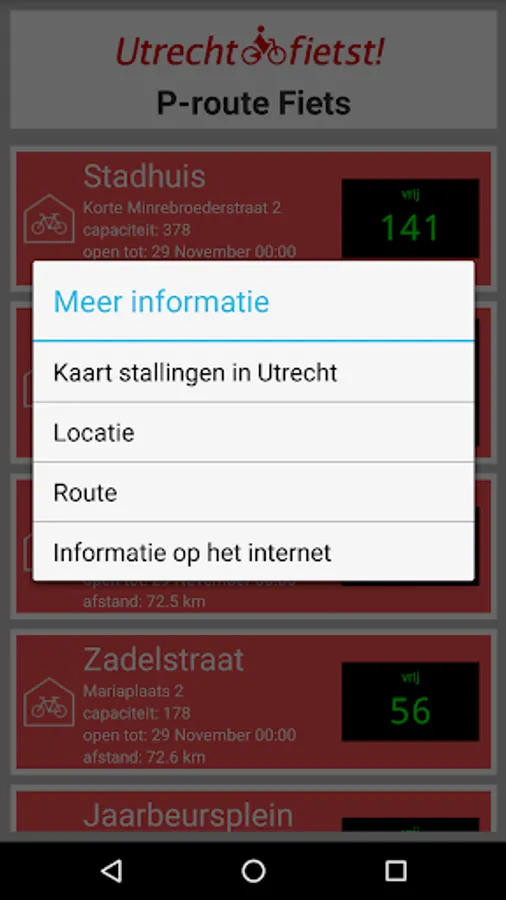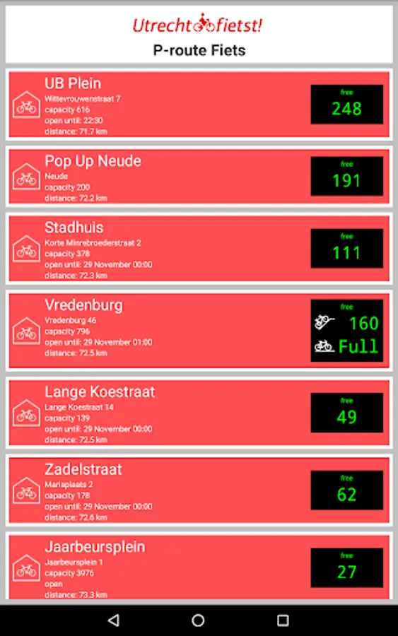 This app lets you see which garages in Utrecht place to park your bike. You can see the number of available places.