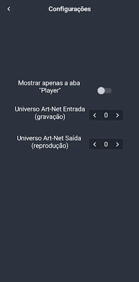 3) Player mode: reproduces what was recorded in Art-Net mode or what was recorded in manual mode, also allows automatic switching between recorded programs;