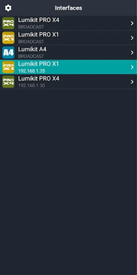 Remote control for the Lumikit PRO X4, PRO X1 and A4 interface allows activating and deleting already recorded programs and triggering the recording of new programs. For correct operation, the cell phone or tablet must be connected to the same network as the interface.