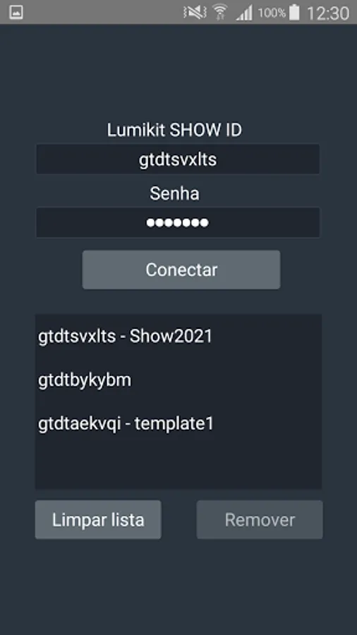 In Lumikit SHOW, under "OPTIONS", in the "LumiCloud" section, enable access and create a password. In the App inform the "LumiCloud ID" and the password.