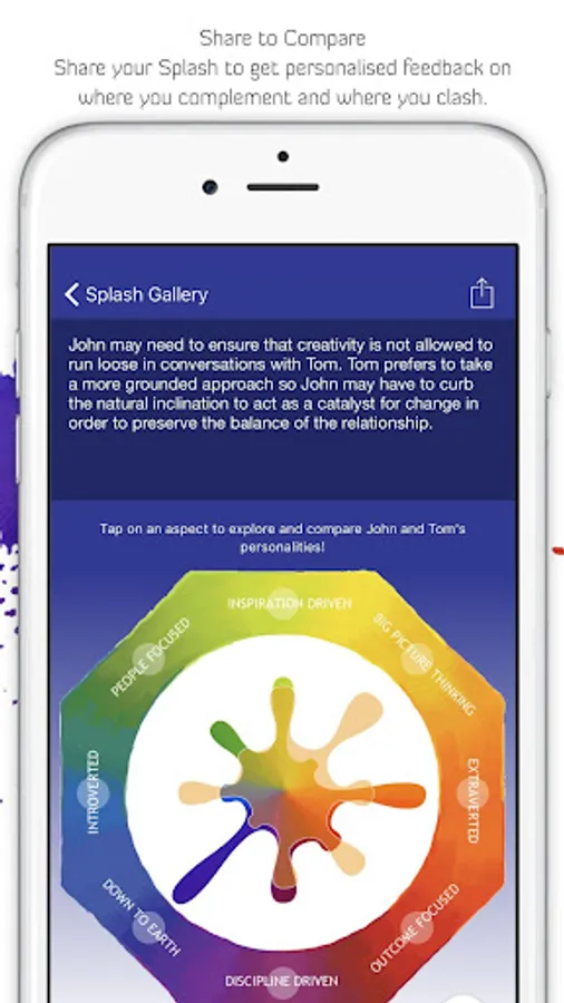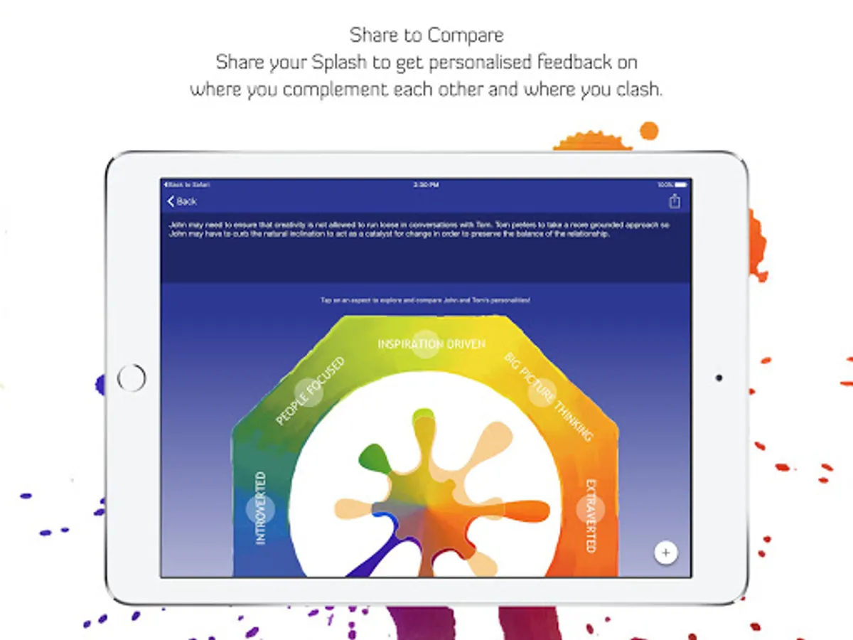 Share your Splash online with colleagues, friends and family to get personalised feedback on where you complement each other and where you might clash!