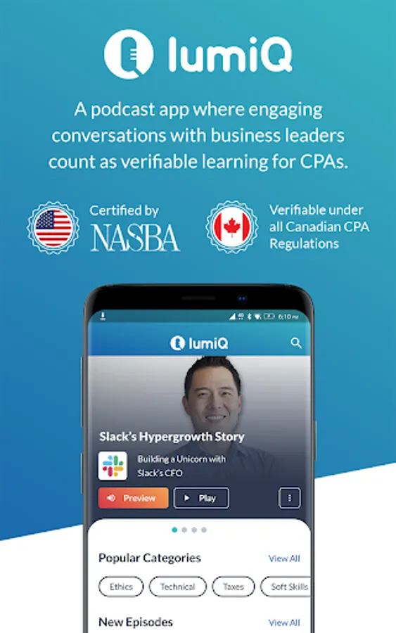 LumiQ is a verified professional education podcasting app that features engaging conversations with the business world’s top luminaries, built specifically for CPAs (Chartered Professional Accountants).